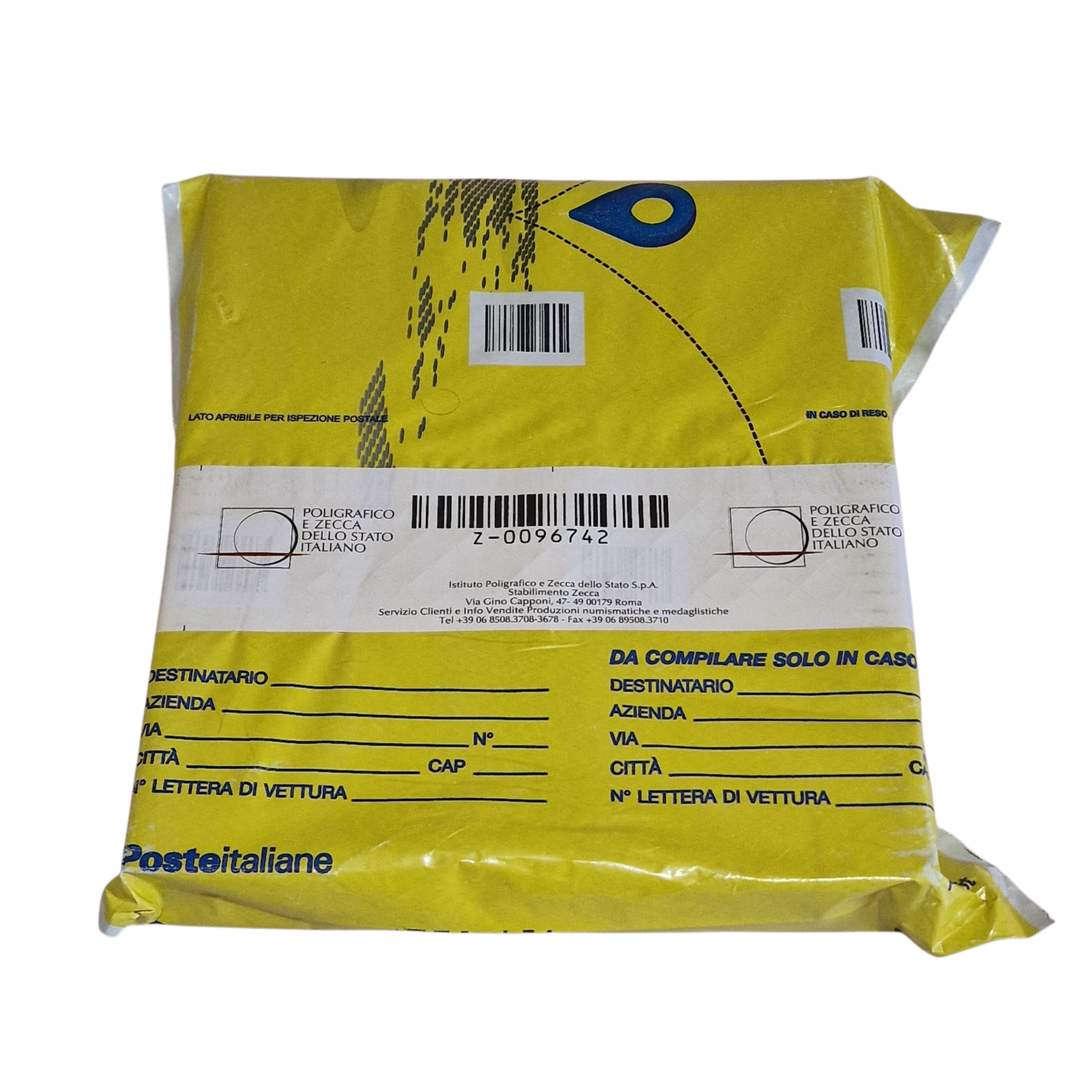 👉 The second photo shows exactly what you will receive: the official package from the Italian Mint, sealed in its original plastic bag, containing the coin, the presentation box and a numbered certificate of authenticity.