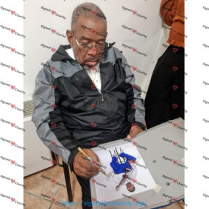 This is a modern, professionally printed photo, signed in recent years. The autograph is genuine and was personally obtained, not a reproduction or preprint.