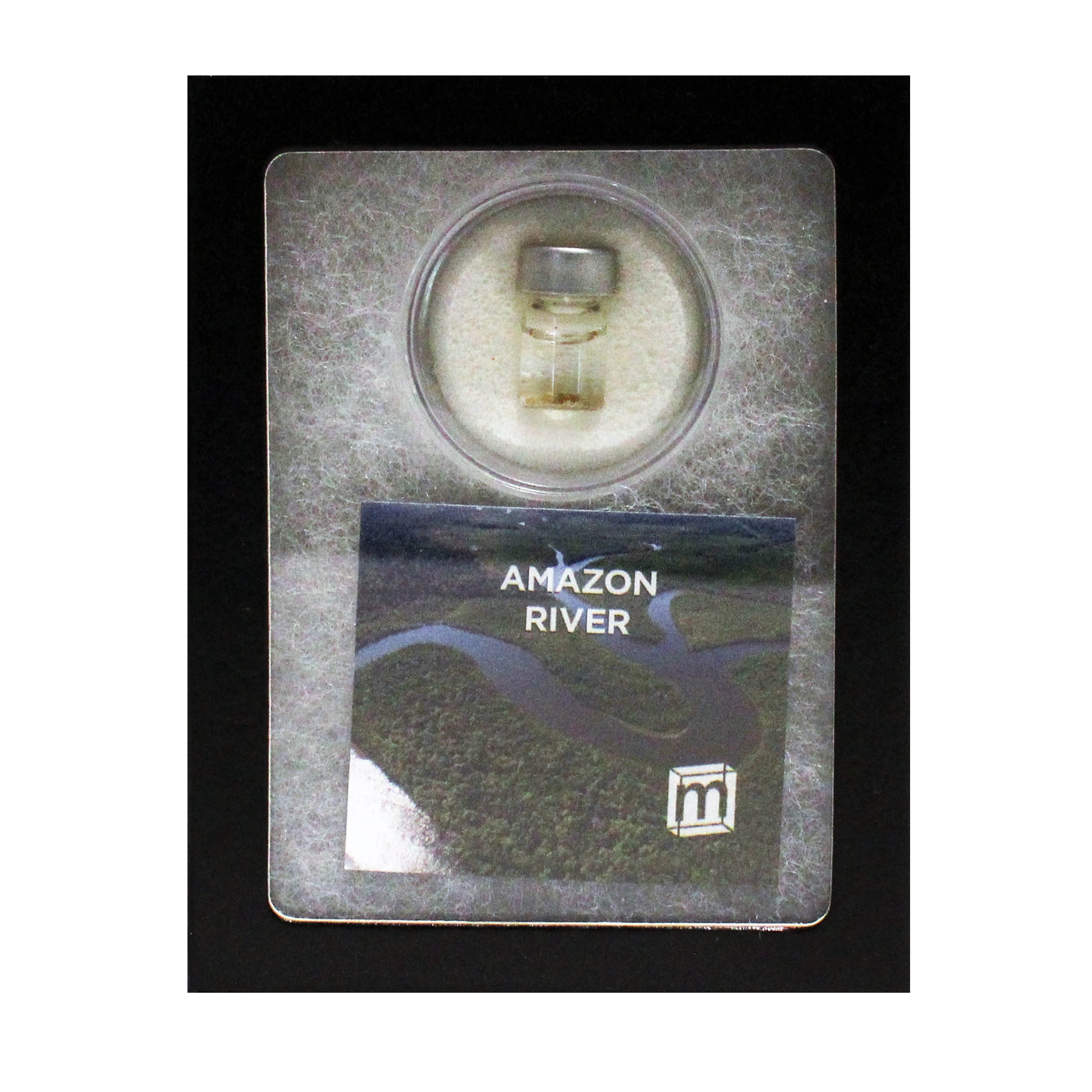 This specimen is a vial of Amazon River Water collected near Iquitos, Peru, the “Peruvian Capitol of the Amazon.” The item is encased in an acrylic specimen jar and housed in a glass-topped riker display box measuring 4x3x1 (inches). A small information card will accompany the specimen.
