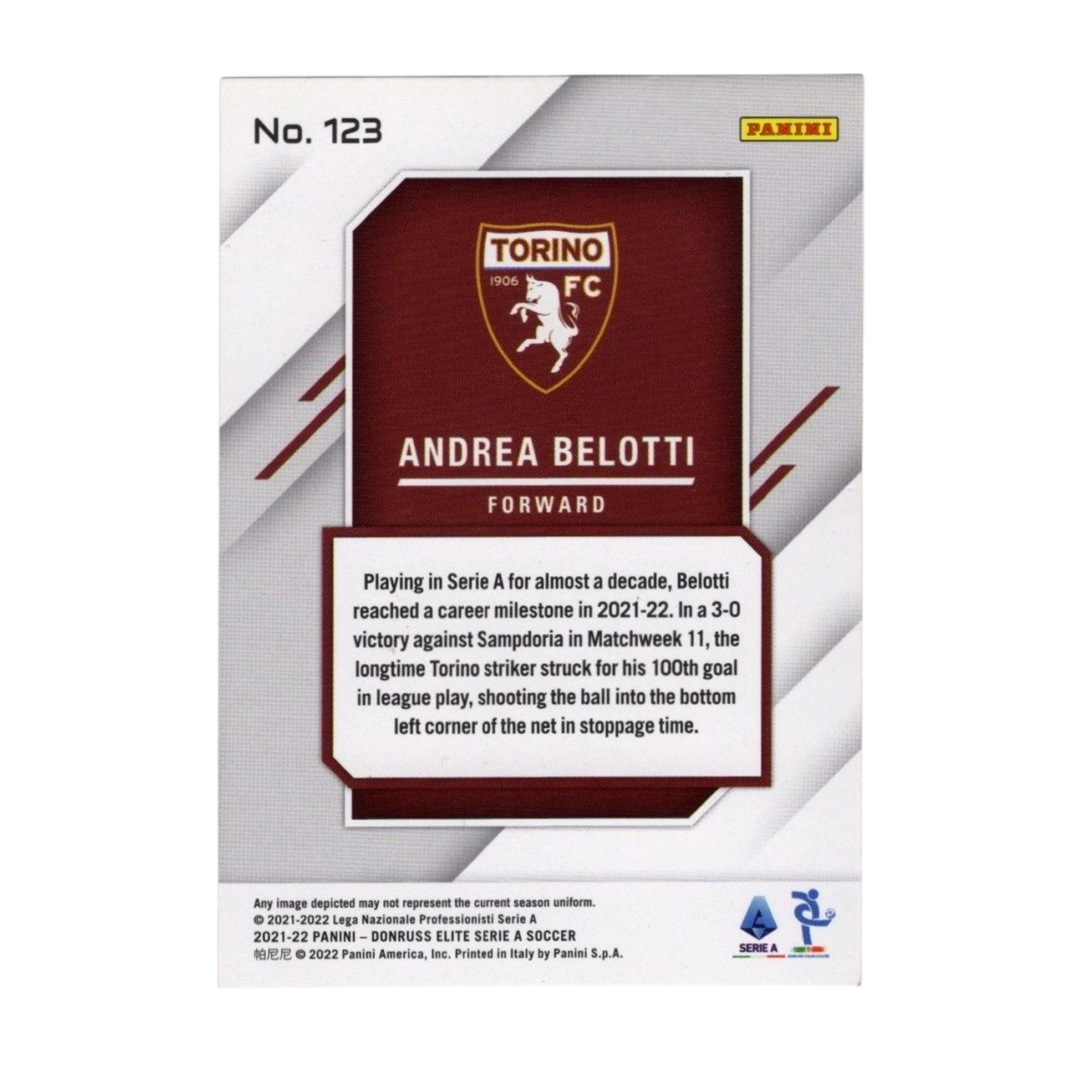 Andrea Belotti – Signed Card – Panini DONRUSS ELITE Serie A 2021-22 Numbered 123 (Torino F.C.)
