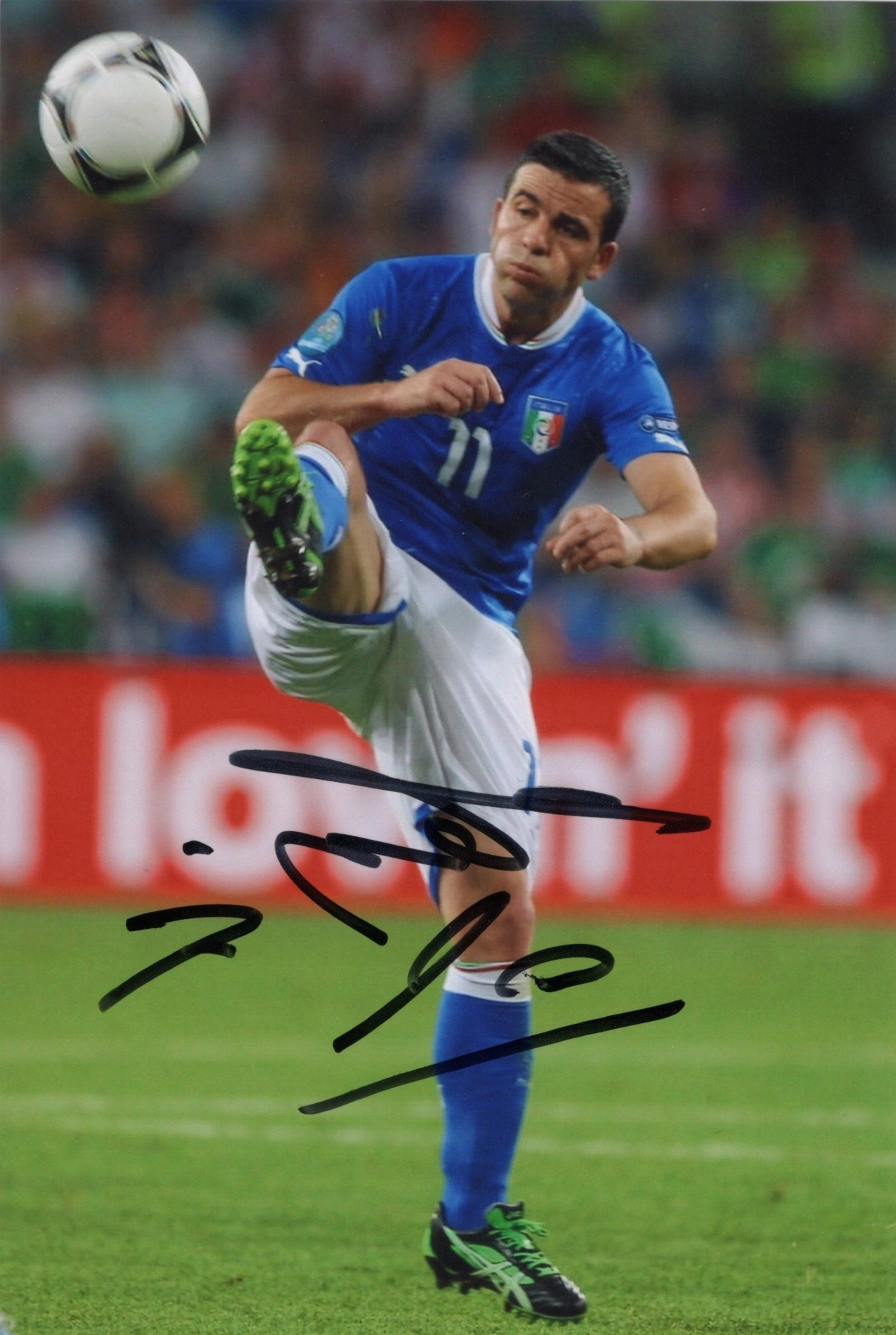 Antonio Di Natale (born 13 October 1977) is an Italian association football coach and former professional player who played as a forward. He is currently in charge as head coach of Serie C club Carrarese. After being a member of the Empoli youth side since 1994, Di Natale started his professional career with the Empoli senior side in 1996, and remained with the club until 2004, aside from brief loan spells with Iperzola, Varese and Viareggio. During his time with Empoli, he helped the club to achieve Serie A promotion during the 2001–02 Serie B season, scoring 16 goals. His breakthrough came during the 2002–03 Serie A season, as he scored 13 goals in the league and helped Empoli avoid relegation. Despite being unable to find the net as regularly or save Empoli from relegation the following season, his performances and consistent goalscoring earned him a transfer to Udinese in 2004. During his time with Udinese, Di Natale’s skill, leadership and ability to both score and create many goals played a key role in helping the club to third and fourth-place finishes in Serie A and qualify for the UEFA Champions League. In 2007, he was named the club’s captain. Di Natale’s consistent goalscoring with Udinese saw him reach double figures for nine consecutive league seasons. He won the Serie A top goalscorer award in 2010 and 2011, and was also awarded the Serie A Italian Footballer of the Year award for his performances in 2010. A late bloomer, unlike most strikers, he enjoyed his most prolific seasons in front of goal well after age 30; between 2009 and 2011, Lionel Messi (82) and Cristiano Ronaldo (86) were the only two players to have scored more league goals than Di Natale (67). In 2015, France Football rated him as one of the ten-best footballers in the world who are over age 36. Di Natale is Udinese’s top appearance holder and goal-scorer in Serie A with 191 goals in 385 appearances, and in UEFA club competitions, with 17 goals in 37 appearances. With 209 goals, he is also the sixth-highest goal-scorer in Serie A, and with 311 goals, he is the eighth-highest scoring Italian player in all competitions, behind Silvio Piola, Alessandro Del Piero, Giuseppe Meazza, Luca Toni, Roberto Baggio, Francesco Totti and Filippo Inzaghi. At international level, Di Natale represented the Italy national team 42 times between 2002 and 2012, scoring 11 goals. With Italy, he participated in UEFA Euro 2008; the 2010 FIFA World Cup, where he scored one goal; and at Euro 2012, where he also scored a goal as Italy reached the final of the tournament.