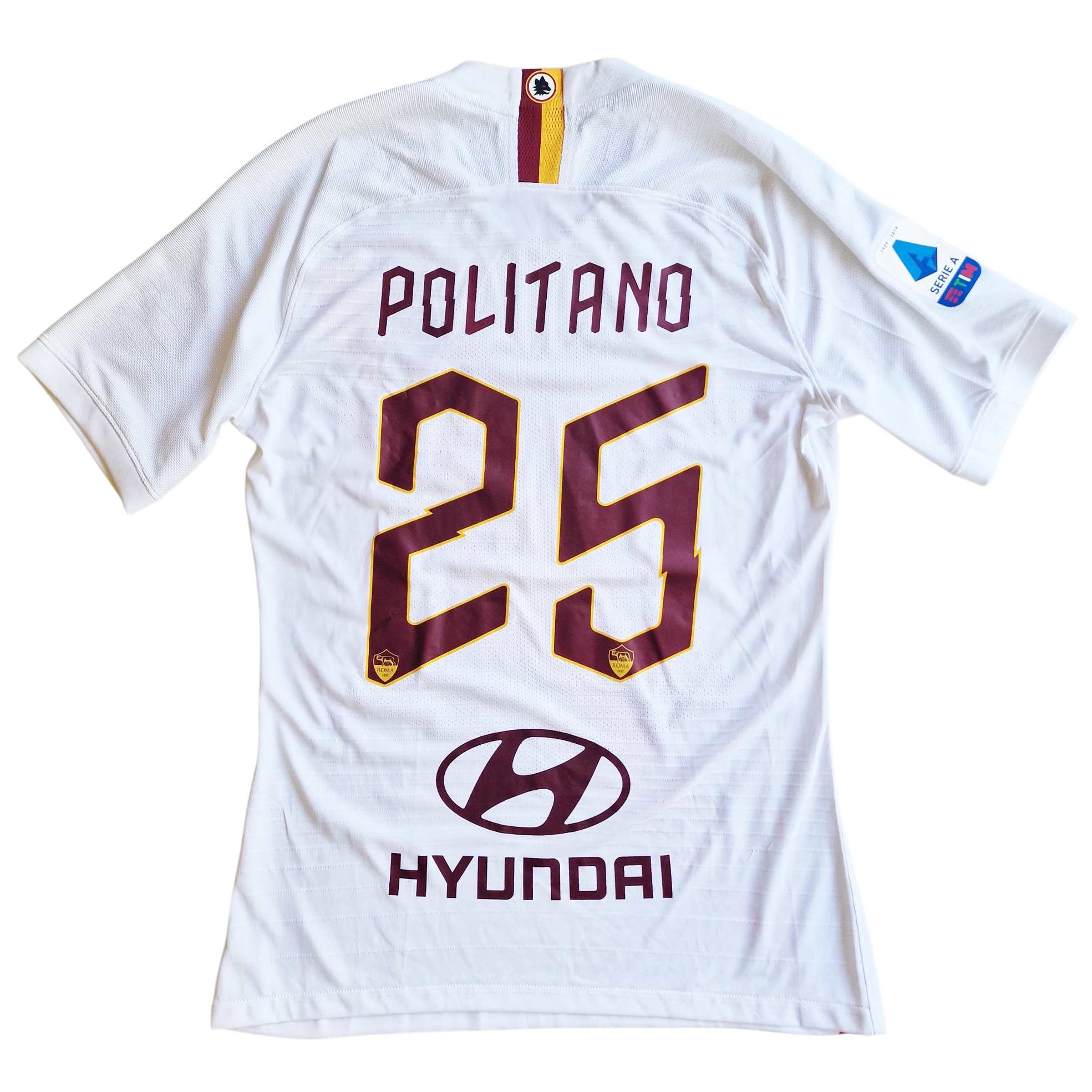 🔎 Interesting fact: this jersey is particularly rare because it is personalized with Matteo Politano, who underwent medical tests with AS Roma in January 2020 but the transfer was never finalized. He never officially played for the club, making this a unique collector’s item.