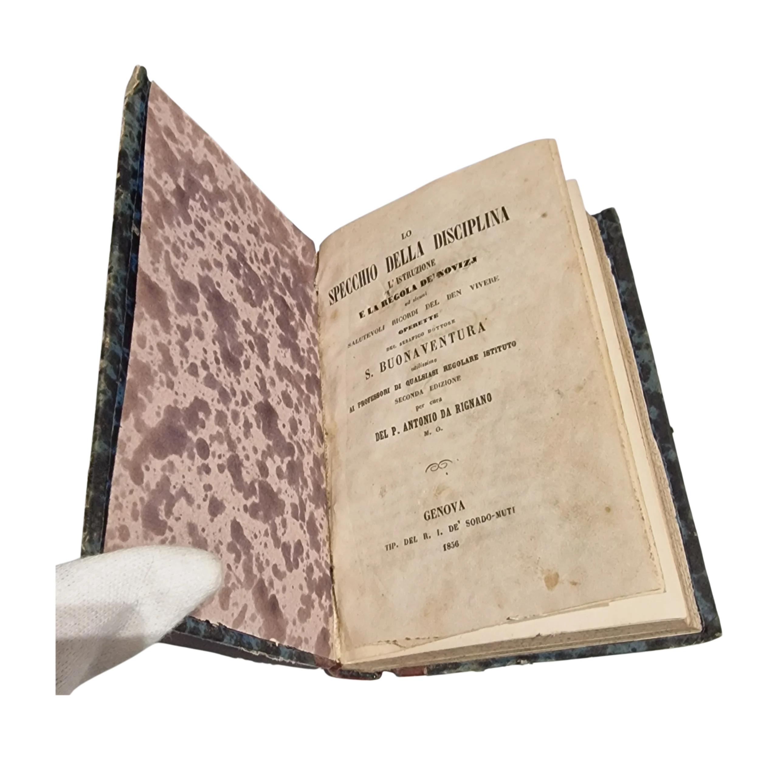 Authentic 19th century antique book: Lo Specchio della Disciplina by Antonio da Rignano (Second Edition) Genoa 1856