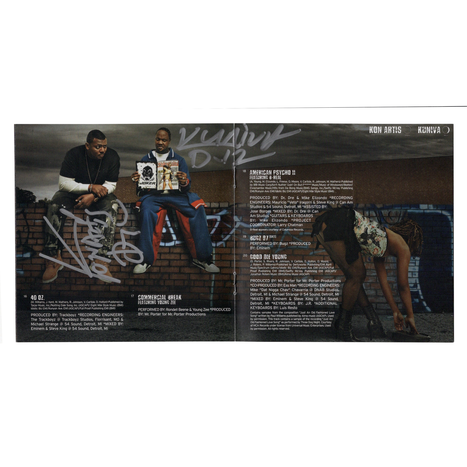 D12 (an initialism for the Dirty Dozen) is an American hip hop group from Detroit, Michigan. Formed in 1996, the group achieved mainstream success with its lineup of de facto leader Eminem, Proof, Bizarre, Kon Artis, Kuniva and Swifty McVay. D12 had chart-topping albums in the United States, United Kingdom, and Australia during the early 2000s. The group released the albums Devil’s Night in 2001 and D12 World in 2004, spawning numerous hits such as “Shit on You”, “Purple Pills”, “Fight Music”, “My Band” and “How Come” throughout that period. Both albums were certified double platinum by the Recording Industry Association of America (RIAA). In 2004, the group won the MTV Europe Music Award for Best Hip-Hop Act. Since 2006, Eminem’s hiatus and the death of Proof resulted in the group being less active in subsequent years. Between 2008 and 2015, D12 released three official mixtapes with the core lineup reduced to Bizarre, Kuniva and Swifty McVay, with isolated token appearances by Eminem and some contributions from Mr. Porter (formerly Kon Artis) and returning ’90s affiliate Fuzz Scoota. On August 31, 2018, Eminem released his tenth studio album Kamikaze, containing a song titled “Stepping Stone”, on which he declared that ‘D12 is over,’ indicating his formal retirement from the group after many years of inactive membership. Bizarre, Kuniva and Swifty have continued to tour and record as D12.