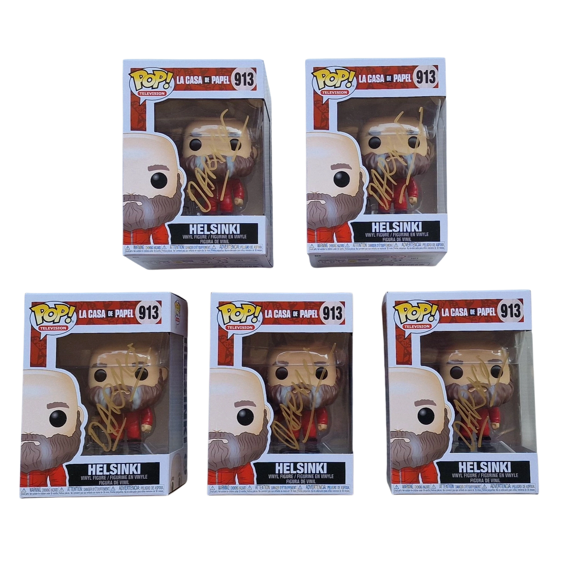 We are proud to present this exclusive collectible: an original Funko POP! figure of Helsinki (#913 from La Casa de Papel), personally signed by actor Darko Perić to support our charitable initiatives. Each figure is signed on the front window with a gold marker, as clearly shown in the images. The autograph was obtained in person and captured during the exact moment of signing.