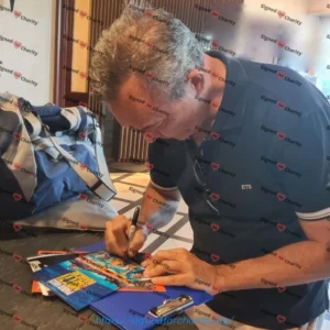 This is a modern, professionally printed photo, signed in recent years. The autograph is genuine and was personally obtained, not a reproduction or preprint.