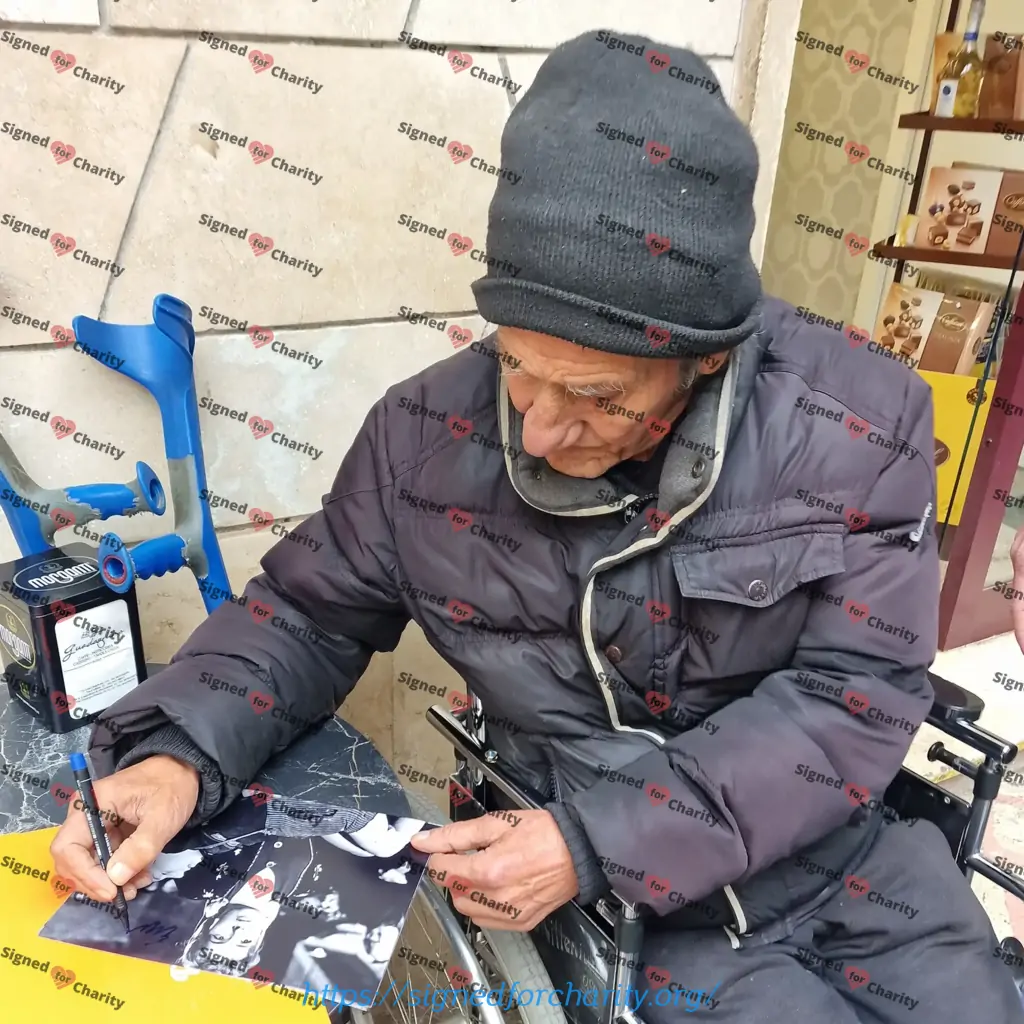 This is not a vintage photo or old one. This photo is new, printed and signed in recent years and the signature is original.