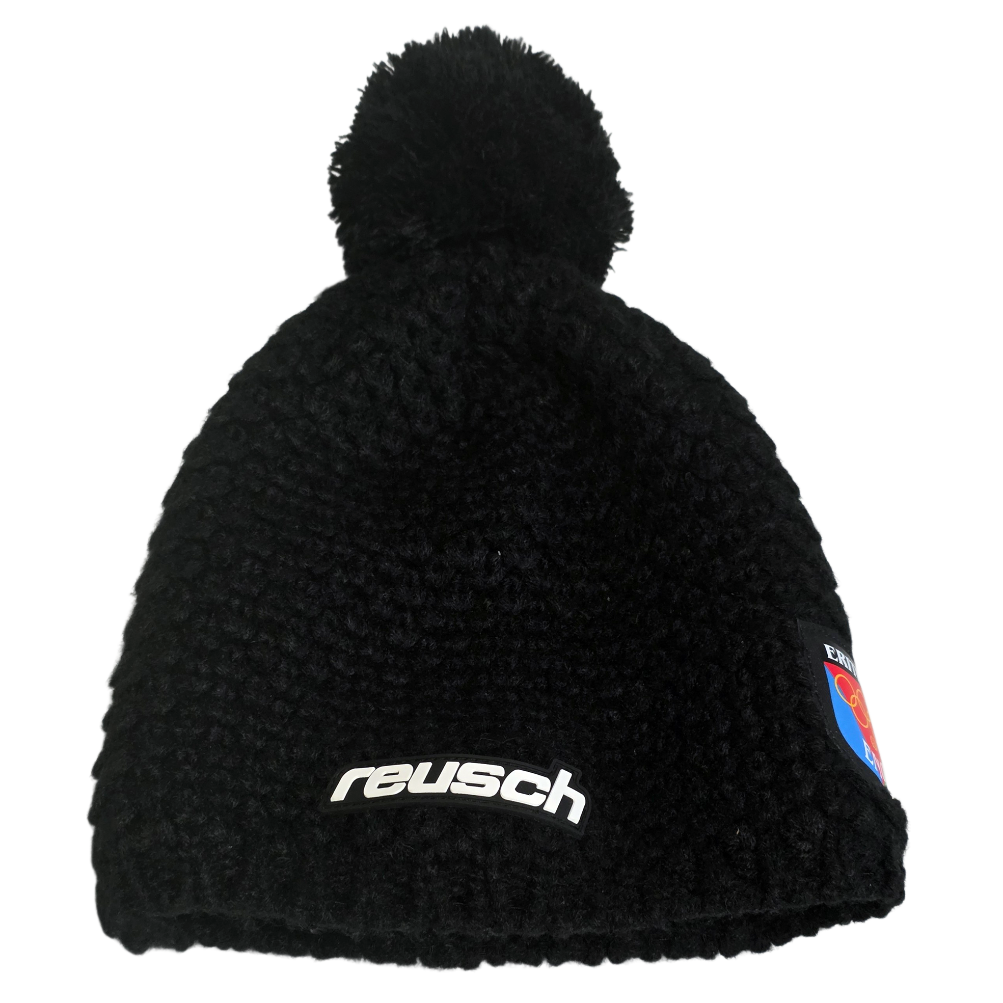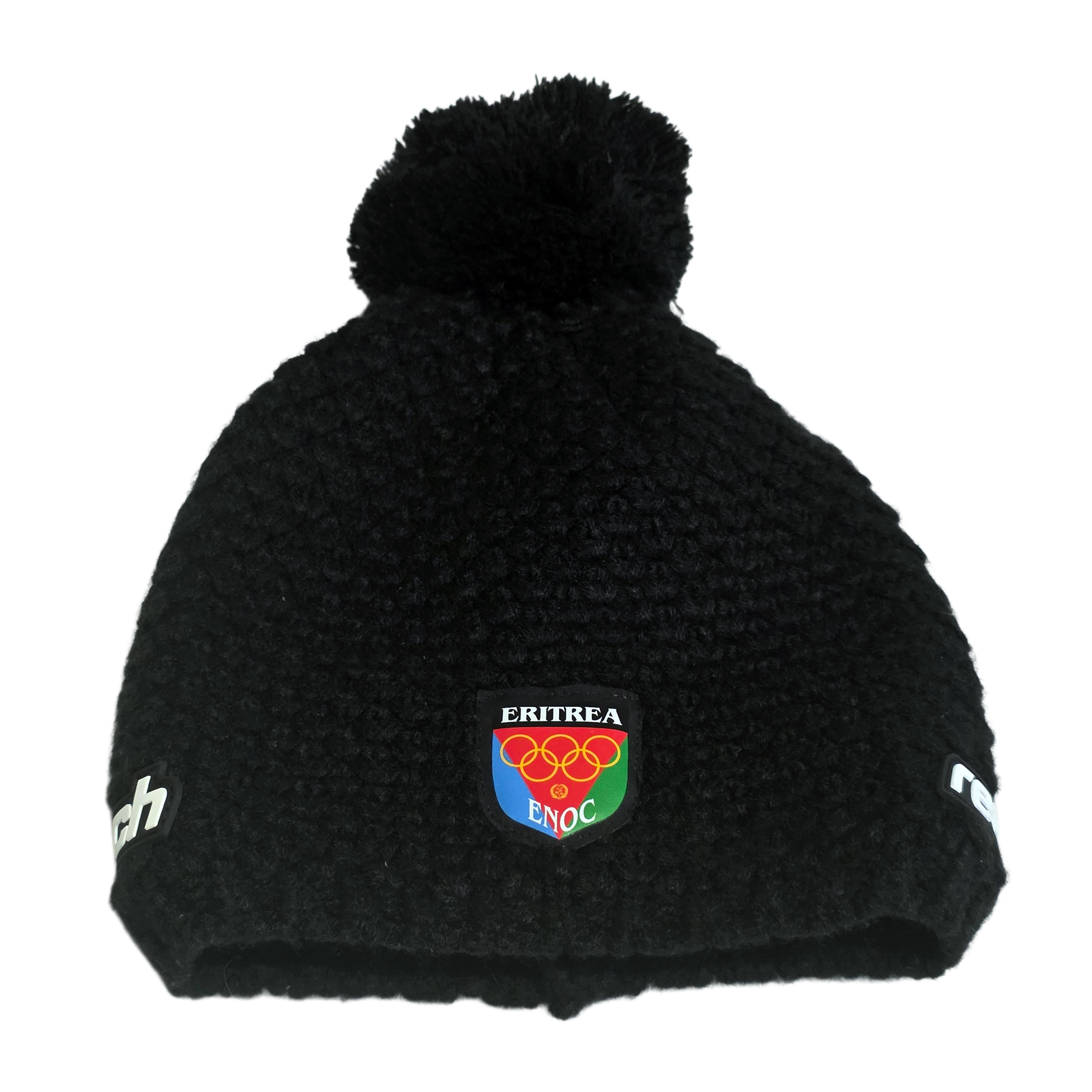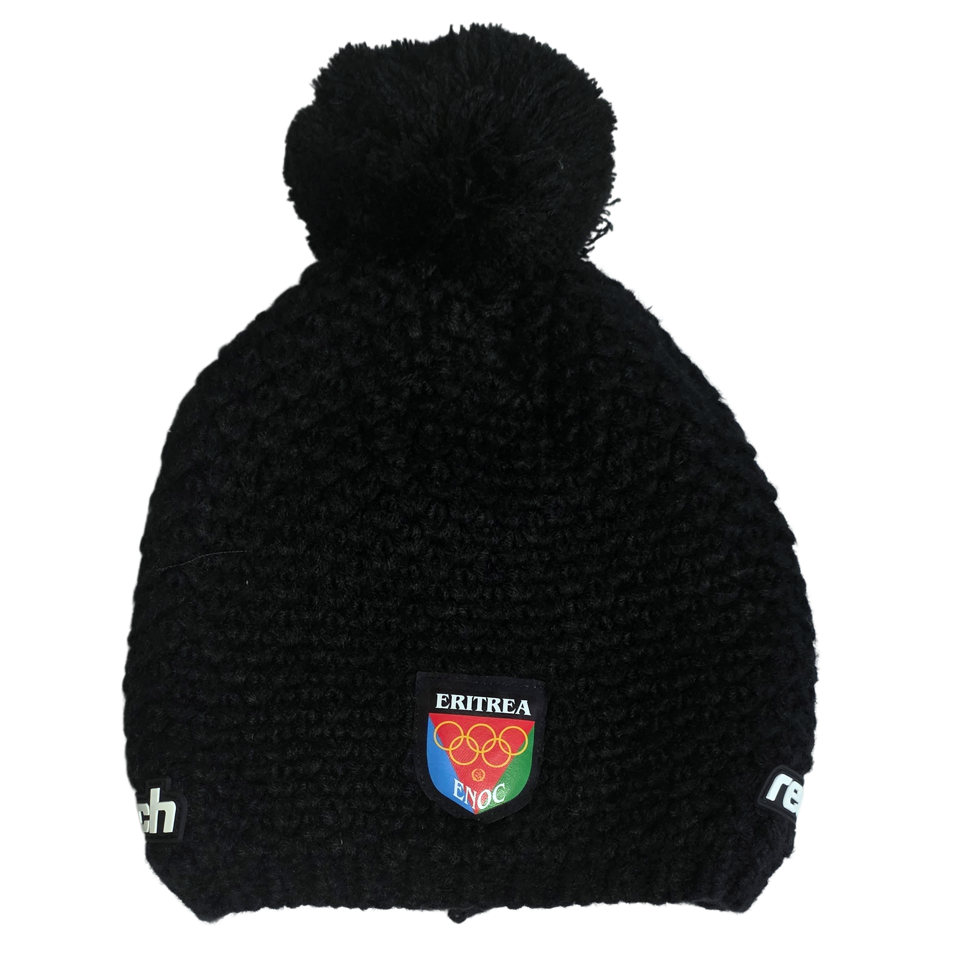 Authentic Eritrea Olympic Team beanie connected to the Milano Cortina 2026 Winter Olympic Games, technical equipment by Reusch and athlete issued. The beanie features the Eritrean National Olympic Committee (ENOC) patch with Olympic rings and is associated with Eritrean alpine skier Shannon-Ogbnai Abeda, a historic representative of Eritrea in Winter Olympics. This item is not retail merchandise. It is athlete issued equipment, distributed to accredited athletes as part of official team gear.