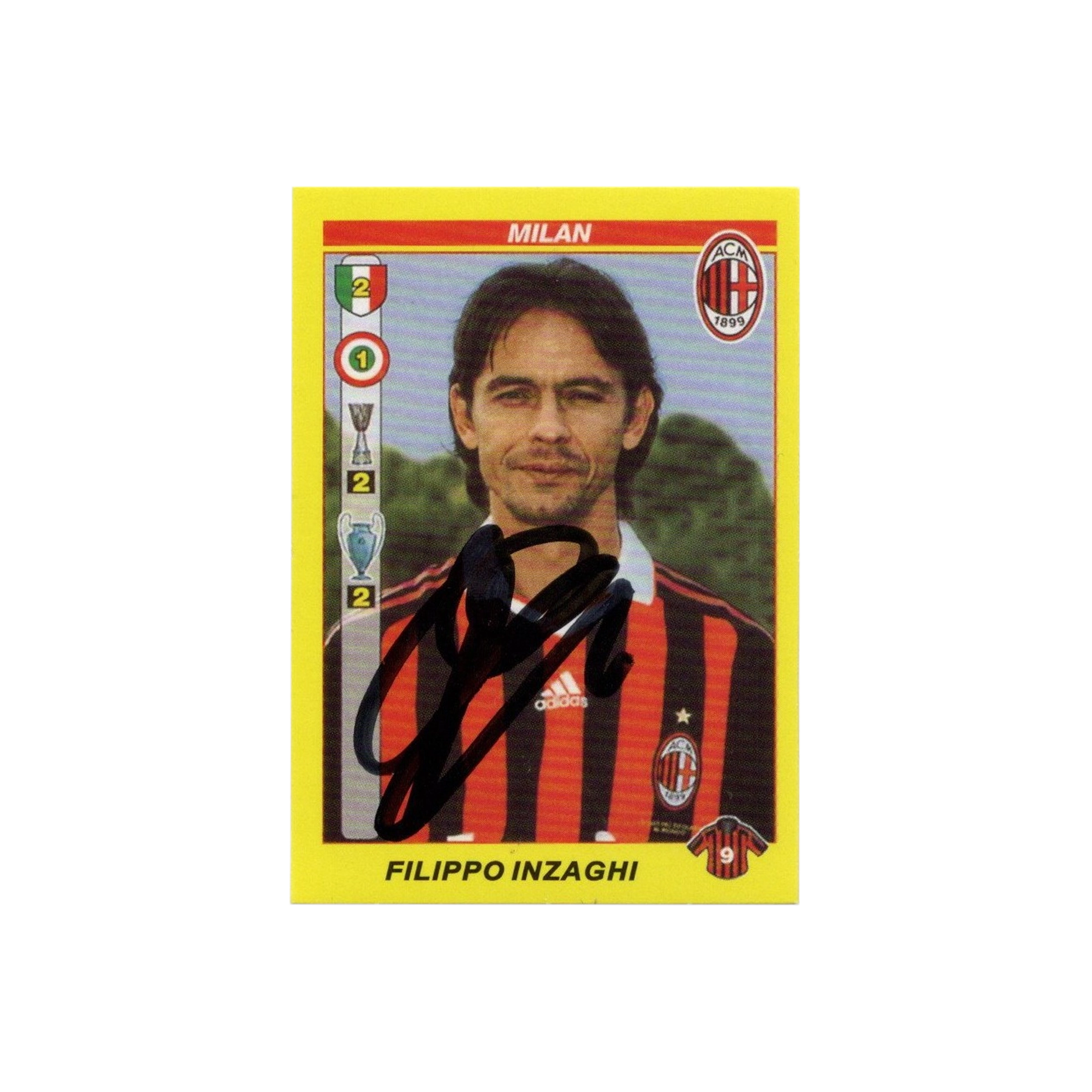 Authentic soccer sticker card signed in person by Filippo Inzaghi.