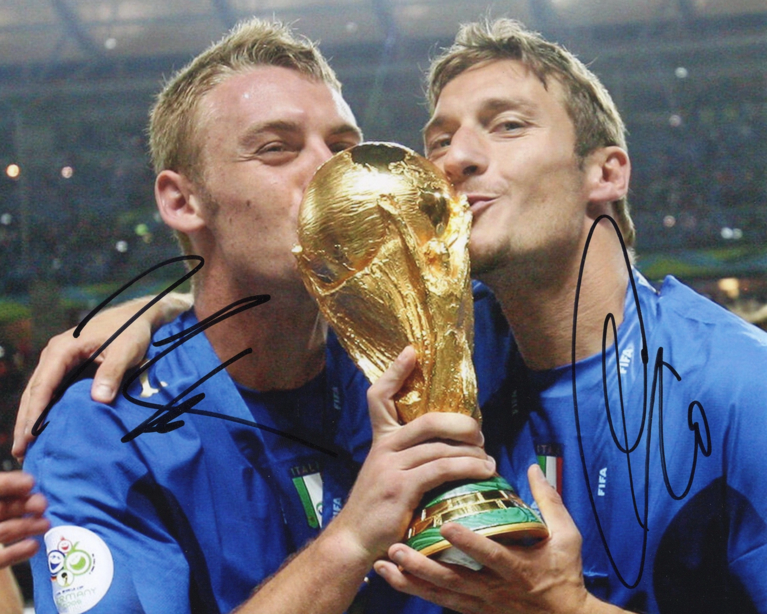 Francesco Totti (born 27 September 1976) is an Italian former professional footballer who played solely for Roma and the Italy national team primarily as an attacking midfielder or second striker, but could also play as a lone striker or winger. He is often referred to as Er Bimbo de Oro (The Golden Boy), L’Ottavo Re di Roma (The Eighth King of Rome), Er Pupone (The Big Baby), Il Capitano (The Captain), and Il Gladiatore (The Gladiator) by the Italian sports media. A creative offensive playmaker renowned for his vision, technique, and goalscoring ability, Totti is considered to be one of the greatest Italian players of all time and Roma’s greatest player ever. Totti spent his entire career at Roma, winning a Serie A title, two Coppa Italia titles, and two Supercoppa Italiana titles. He is the second-highest scorer of all time in Italian league history with 250 goals, and is the sixth-highest scoring Italian in all competitions with 316 goals. Totti is the top goalscorer and the most capped player in Roma’s history, holds the record for the most goals scored in Serie A while playing for a single club, and also holds the record for the youngest club captain in the history of Serie A. In November 2014, Totti extended his record as the oldest goalscorer in UEFA Champions League history, aged 38 years and 59 days. A 2006 FIFA World Cup winner and UEFA Euro 2000 finalist with Italy, Totti was selected in the All-Star team for both tournaments; he also represented his country at the 2002 World Cup and Euro 2004. In 2007, Totti announced his international retirement due to recurring physical problems and in order to focus solely on club play with Roma. Totti won a record eleven Oscar del Calcio awards from the Italian Footballers’ Association: five Serie A Italian Footballer of the Year awards, two Serie A Footballer of the Year awards, two Serie A Goal of the Year awards, one Serie A Goalscorer of the Year award, and one Serie A Young Footballer of the Year award. He also won the 2007 European Golden Shoe and the 2010 Golden Foot. Totti was selected in the European Sports Media team of the season three times. In 2004, he was named in the FIFA 100, a list of the world’s greatest living players as selected by Pelé, as part of FIFA’s centenary celebrations. In 2011, Totti was recognised by IFFHS as the most popular footballer in Europe. In 2015, France Football rated him as one of the ten-best footballers in the world who are over age 36. Following his retirement in 2017, Totti was awarded the Player’s Career Award and the UEFA President’s Award.
