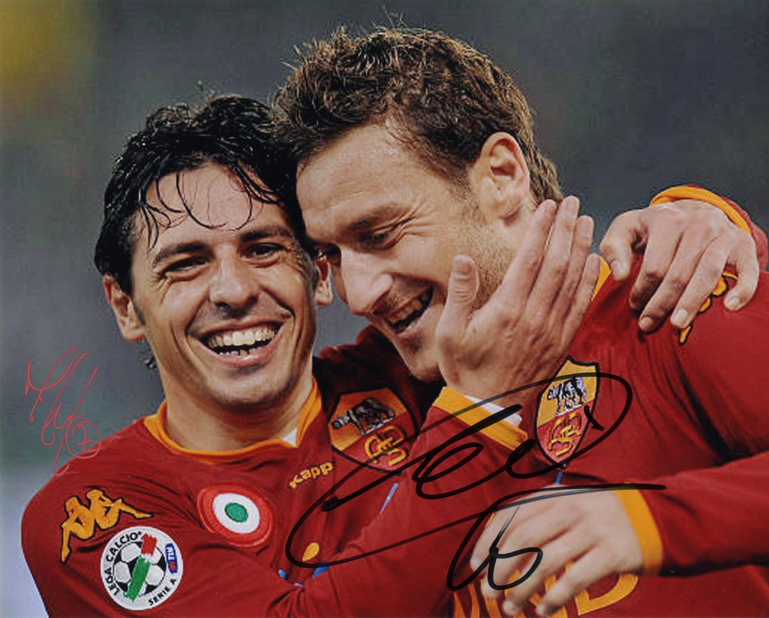 Francesco Totti (born 27 September 1976) is an Italian former professional footballer who played solely for Roma and the Italy national team primarily as an attacking midfielder or second striker, but could also play as a lone striker or winger. He is often referred to as Er Bimbo de Oro (The Golden Boy), L’Ottavo Re di Roma (The Eighth King of Rome), Er Pupone (The Big Baby), Il Capitano (The Captain), and Il Gladiatore (The Gladiator) by the Italian sports media. A creative offensive playmaker renowned for his vision, technique, and goalscoring ability, Totti is considered to be one of the greatest Italian players of all time and Roma’s greatest player ever. Totti spent his entire career at Roma, winning a Serie A title, two Coppa Italia titles, and two Supercoppa Italiana titles. He is the second-highest scorer of all time in Italian league history with 250 goals, and is the sixth-highest scoring Italian in all competitions with 316 goals. Totti is the top goalscorer and the most capped player in Roma’s history, holds the record for the most goals scored in Serie A while playing for a single club, and also holds the record for the youngest club captain in the history of Serie A. In November 2014, Totti extended his record as the oldest goalscorer in UEFA Champions League history, aged 38 years and 59 days. A 2006 FIFA World Cup winner and UEFA Euro 2000 finalist with Italy, Totti was selected in the All-Star team for both tournaments; he also represented his country at the 2002 World Cup and Euro 2004. In 2007, Totti announced his international retirement due to recurring physical problems and in order to focus solely on club play with Roma. Totti won a record eleven Oscar del Calcio awards from the Italian Footballers’ Association: five Serie A Italian Footballer of the Year awards, two Serie A Footballer of the Year awards, two Serie A Goal of the Year awards, one Serie A Goalscorer of the Year award, and one Serie A Young Footballer of the Year award. He also won the 2007 European Golden Shoe and the 2010 Golden Foot. Totti was selected in the European Sports Media team of the season three times. In 2004, he was named in the FIFA 100, a list of the world’s greatest living players as selected by Pelé, as part of FIFA’s centenary celebrations. In 2011, Totti was recognised by IFFHS as the most popular footballer in Europe. In 2015, France Football rated him as one of the ten-best footballers in the world who are over age 36. Following his retirement in 2017, Totti was awarded the Player’s Career Award and the UEFA President’s Award.
