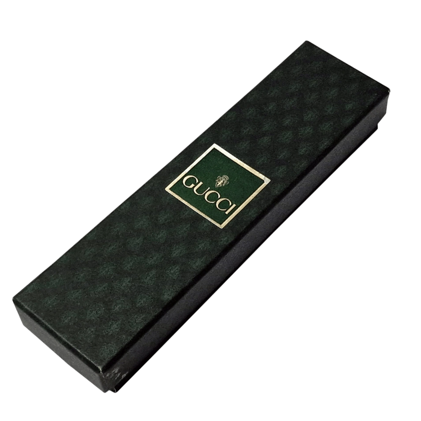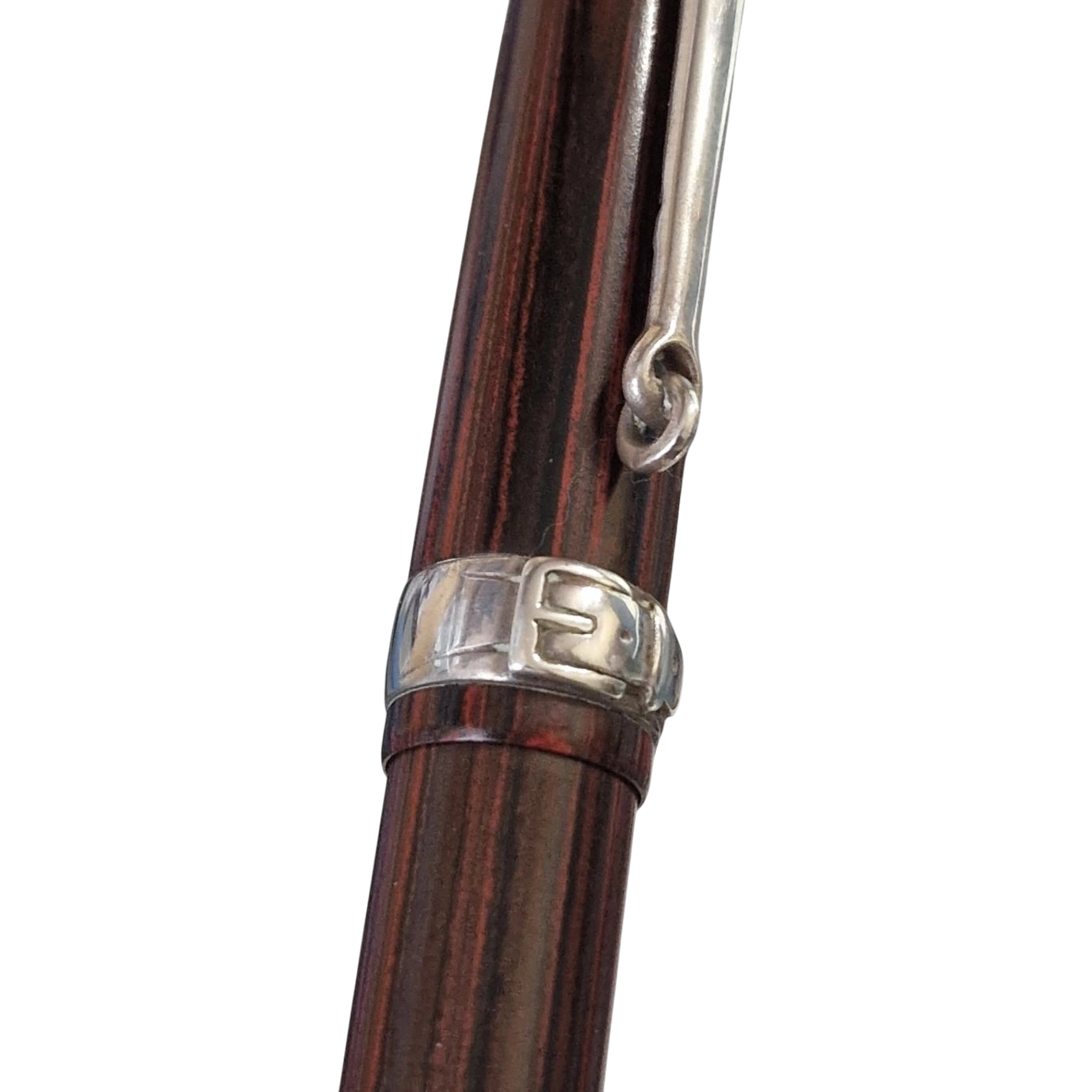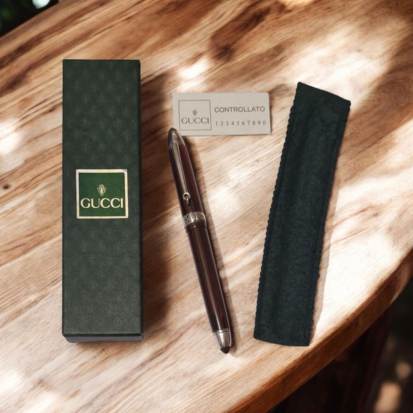 Stipula Fountain Pen for Gucci, Vintage, 1990s, in Ebonite and Silver, Hallmarked, Numbered MCCXXVIII (1228), 18 CT Gold Nib, With its original box and fabric case.