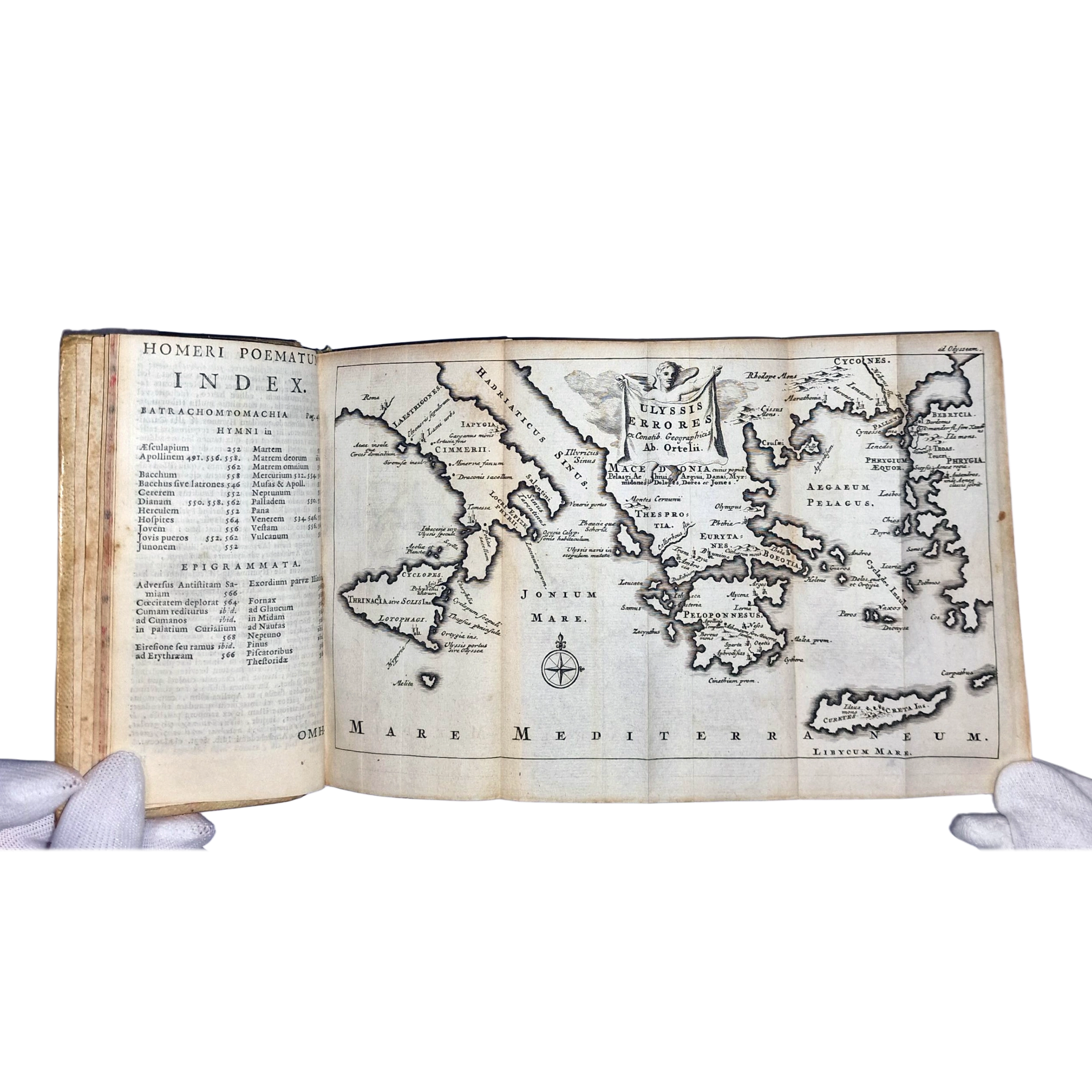 Homer Odyssey 1707 Greek Latin book with map vellum binding