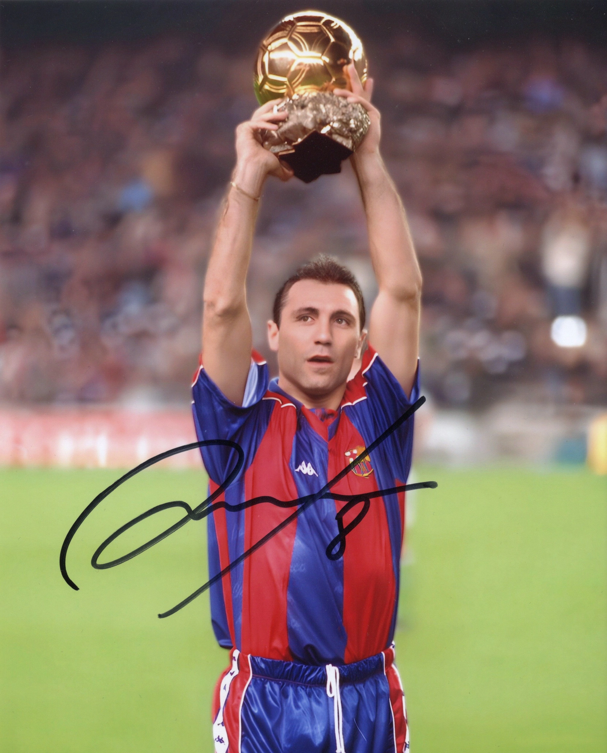 Hristo Stoichkov (born 8 February 1966 in Plovdiv) is a former Bulgarian footballer and manager, who played as a striker. Known by the nickname Kamata and during his time at Barcelona Ayatollah, because of his gesture of raising his arms to the sky, he is considered the strongest Bulgarian footballer of all time. In 2003 he was awarded the honorary title of Golden Player of Bulgaria as the best Bulgarian player of the last half century (1954-2003). Winner of the Ballon d’Or in 1994, in March 2004 Pelé also included him in the FIFA 100, the list of the 125 greatest living footballers, drawn up on the occasion of the FIFA Centenary.