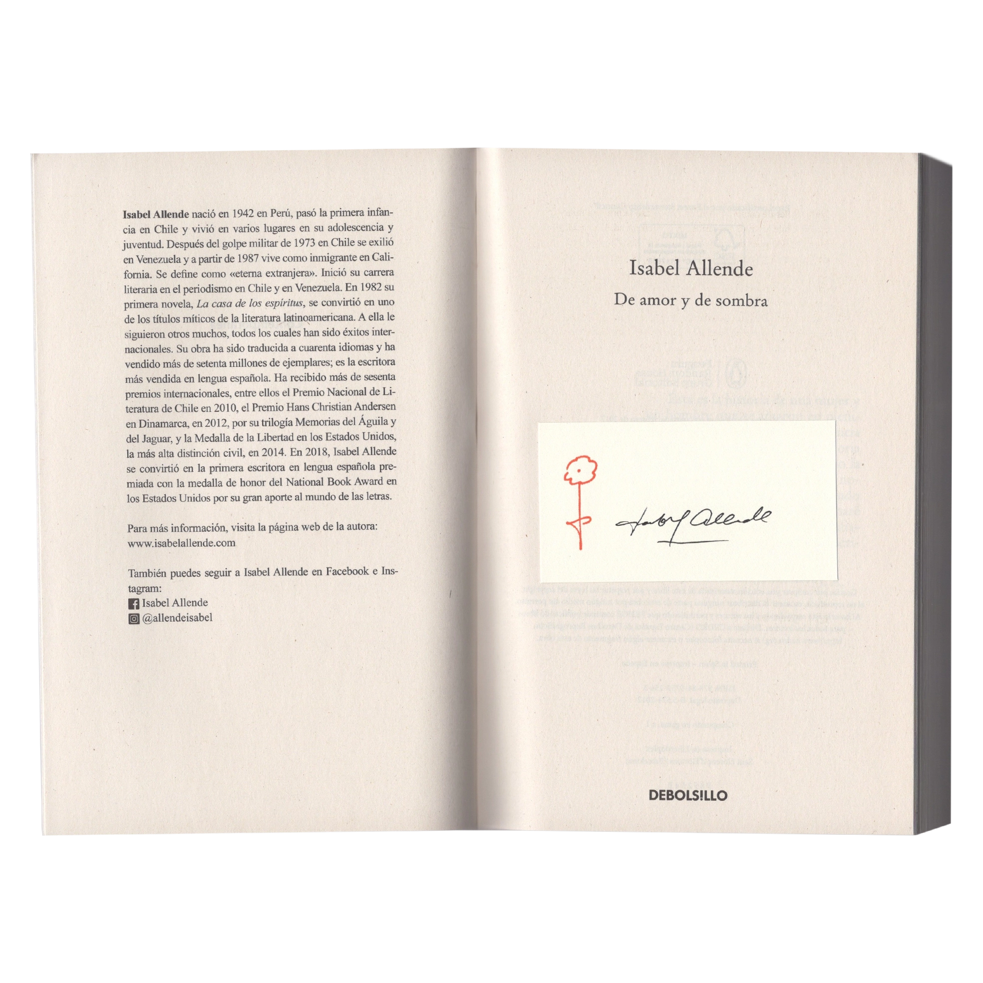 Exclusive Book “De amor y de sombra” autographed by Isabel Allende.