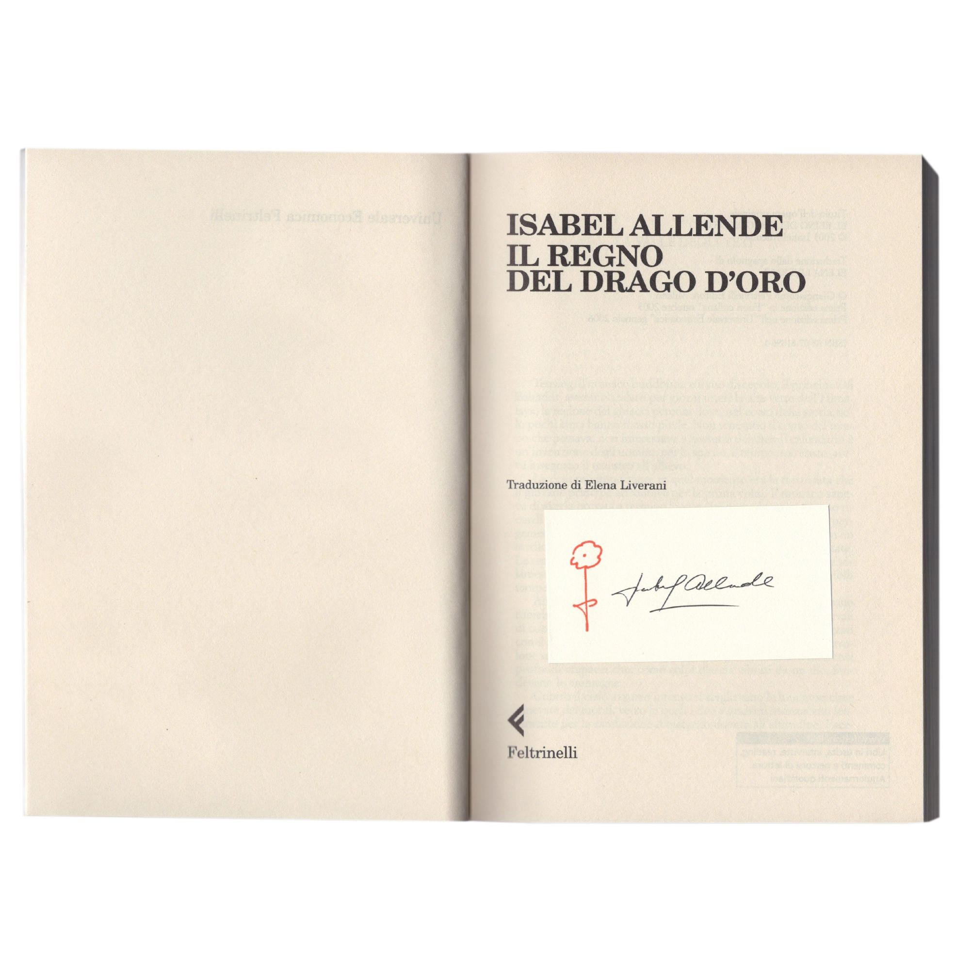 Exclusive Book “Il Regno del Drago d’oro” autographed by Isabel Allende.