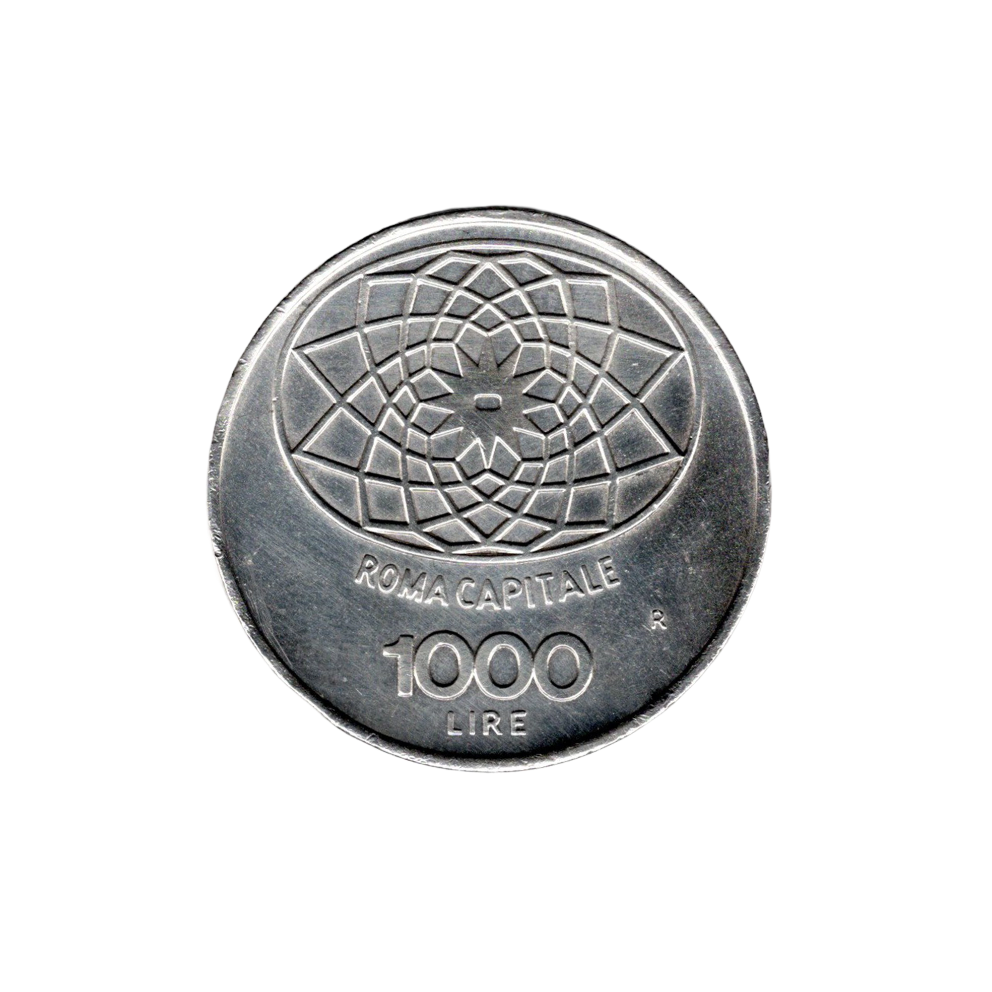 Original Italian 1000 Lire “Roma Capitale” silver coin, issued in 1970 by the Republic of Italy. The coin was struck in 835 silver and features a refined modern design celebrating Rome as the capital city.