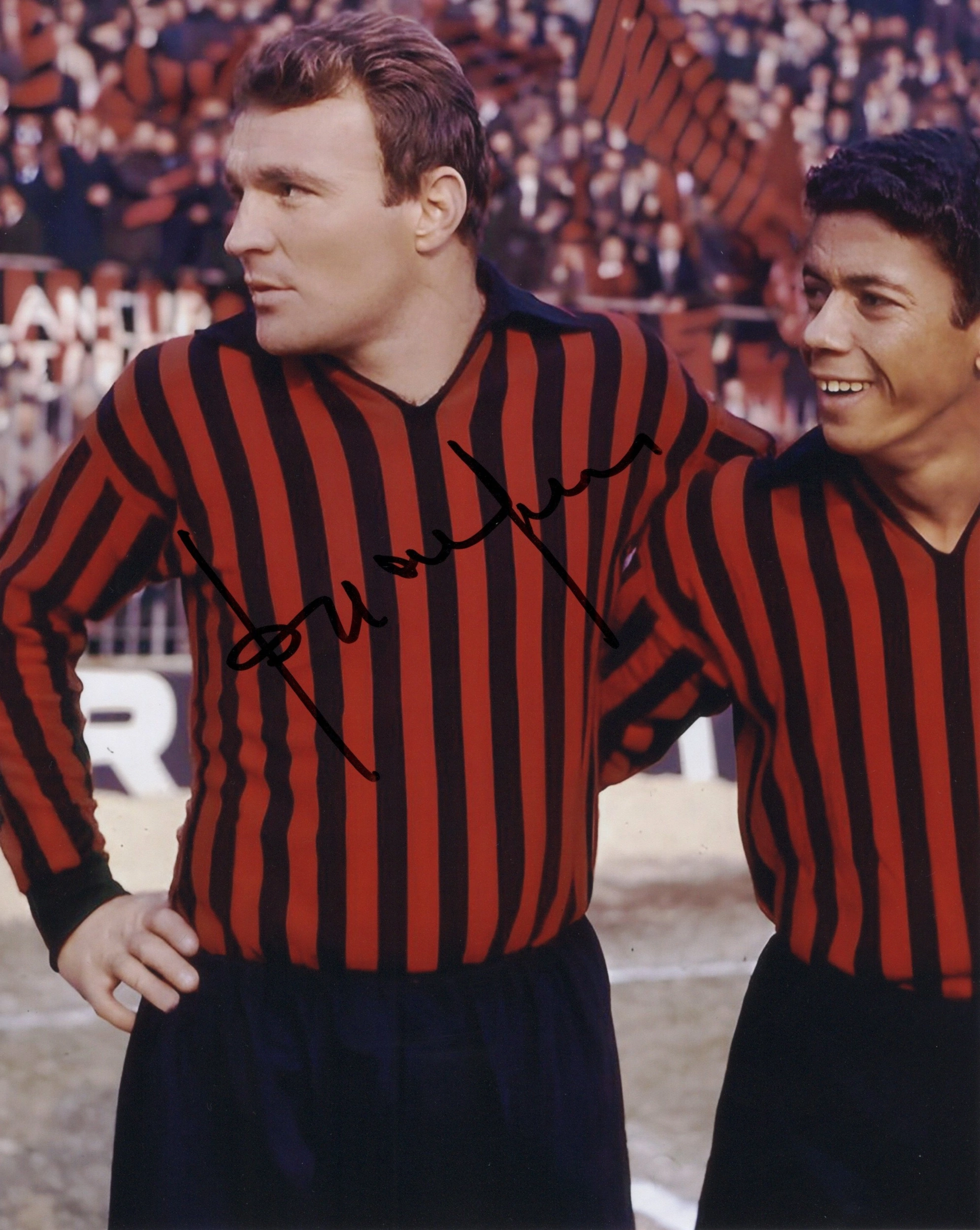 José João Altafini (born 24 July 1938), also known as “Mazzola” in Brazil, is an Italian-Brazilian former footballer, who played as a forward. Although, he began his career with Palmeiras in Brazil, he soon moved to play football in Italy, and is mostly remembered for his highly successful stint with Italian club AC Milan, with which he achieved a great domestic and international success; he later played for Napoli and Juventus, before ending his career in Switzerland with spells at Chiasso and Mendrisiostar. A highly prolific goalscorer, Altafini also held the record for the most goals scored in a single European Cup campaign for over 50 years; he is also one of only eight players to have scored five goals in a single European Cup match. He is the joint-fourth highest scorer in Italian Serie A history (along with Giuseppe Meazza) with 216 goals, and also holds the record for being the fifth-youngest player in Serie A history to score 100 goals, a feat which he managed at the age of 24 years and 239 days. Regarded as one of the best strikers of his generation, and as one of Serie A’s and Milan’s greatest-ever players, Altafini had an eye for goal and was quick, skilful and powerful. At international level, he represented both Brazil and Italy; he was a member of the Brazilian side that won the 1958 FIFA World Cup, and later also represented Italy at the 1962 FIFA World Cup. He was a football pundit on Italian TV for the SKY Italia and a commentator on Italian radio for RTL 102.5, as well as being the secondary commentator on the Pro Evolution Soccer video games in Italy. Altafini coined the expression “golaço” (or the Italianised “golazzo”) whenever a notable goal is scored and was known for his iconic exclamation “incredibile, amici!” (“incredible, friends!”). In his career, Altafini scored 630 goals.