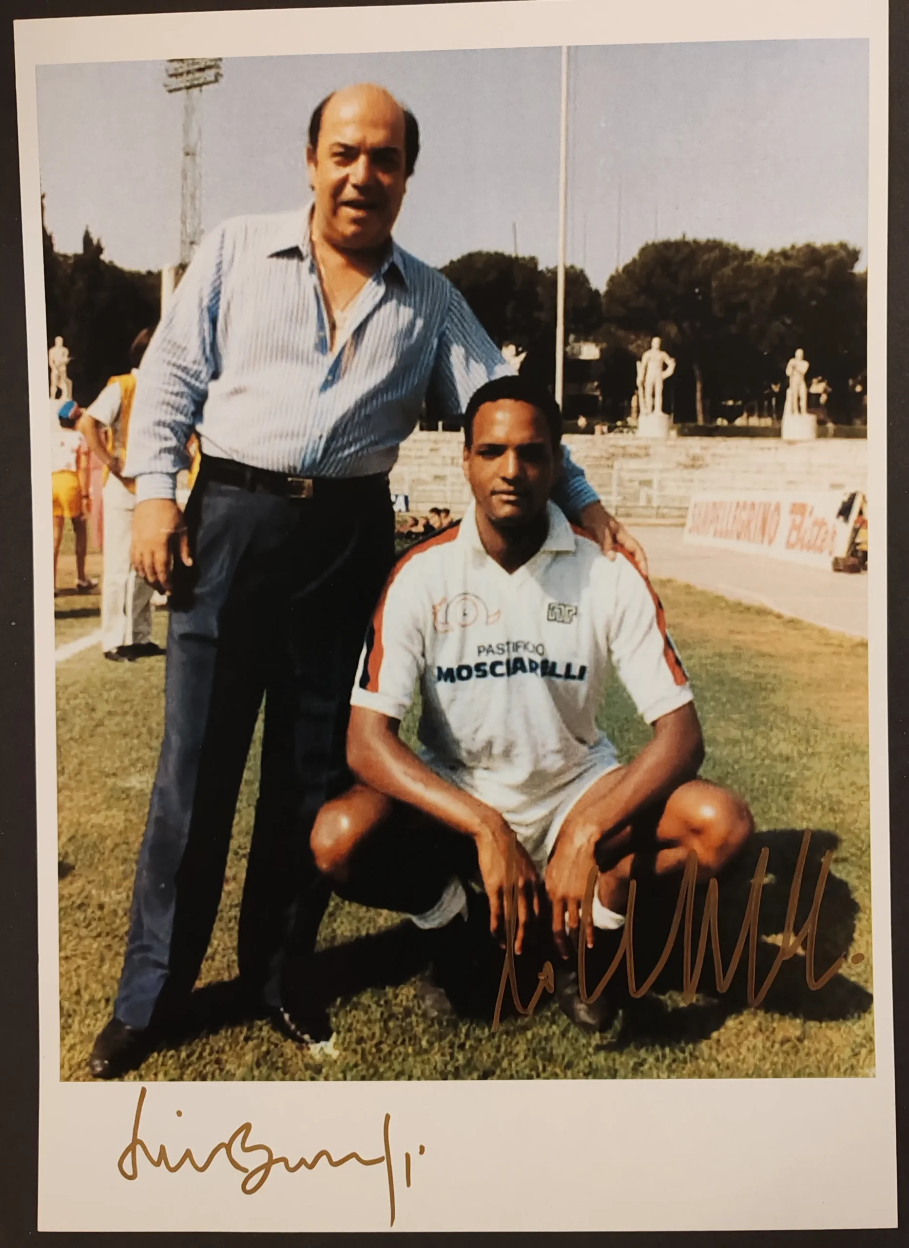 Lino Banfi e Urs Althaus – Signed Cardboard Photo – L’allenatore nel pallone