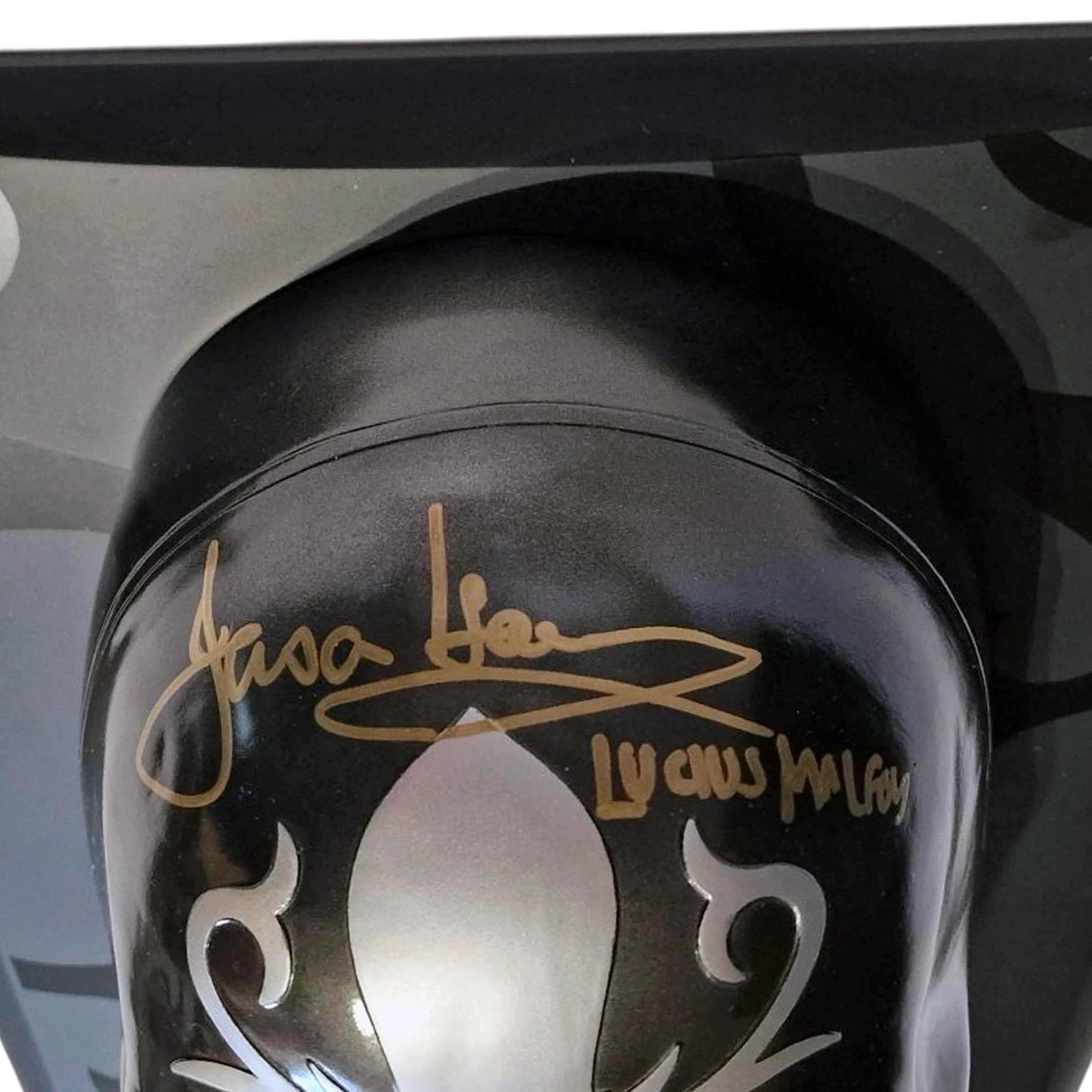 This officially licensed Harry Potter Death Eater Mask has been personally hand-signed by Lucius Malfoy himself, Jason Isaacs!