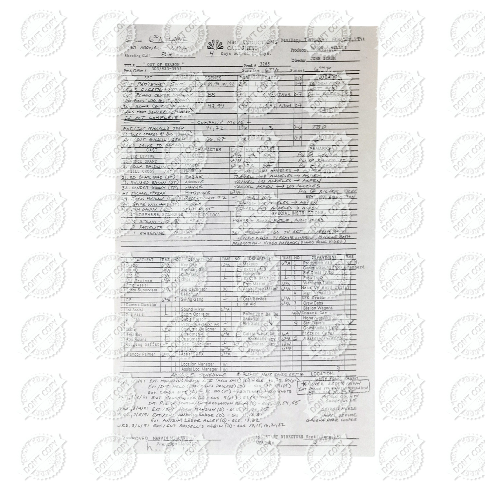 Rare authentic production document from a 1990s TV series, perfect for collectors.
