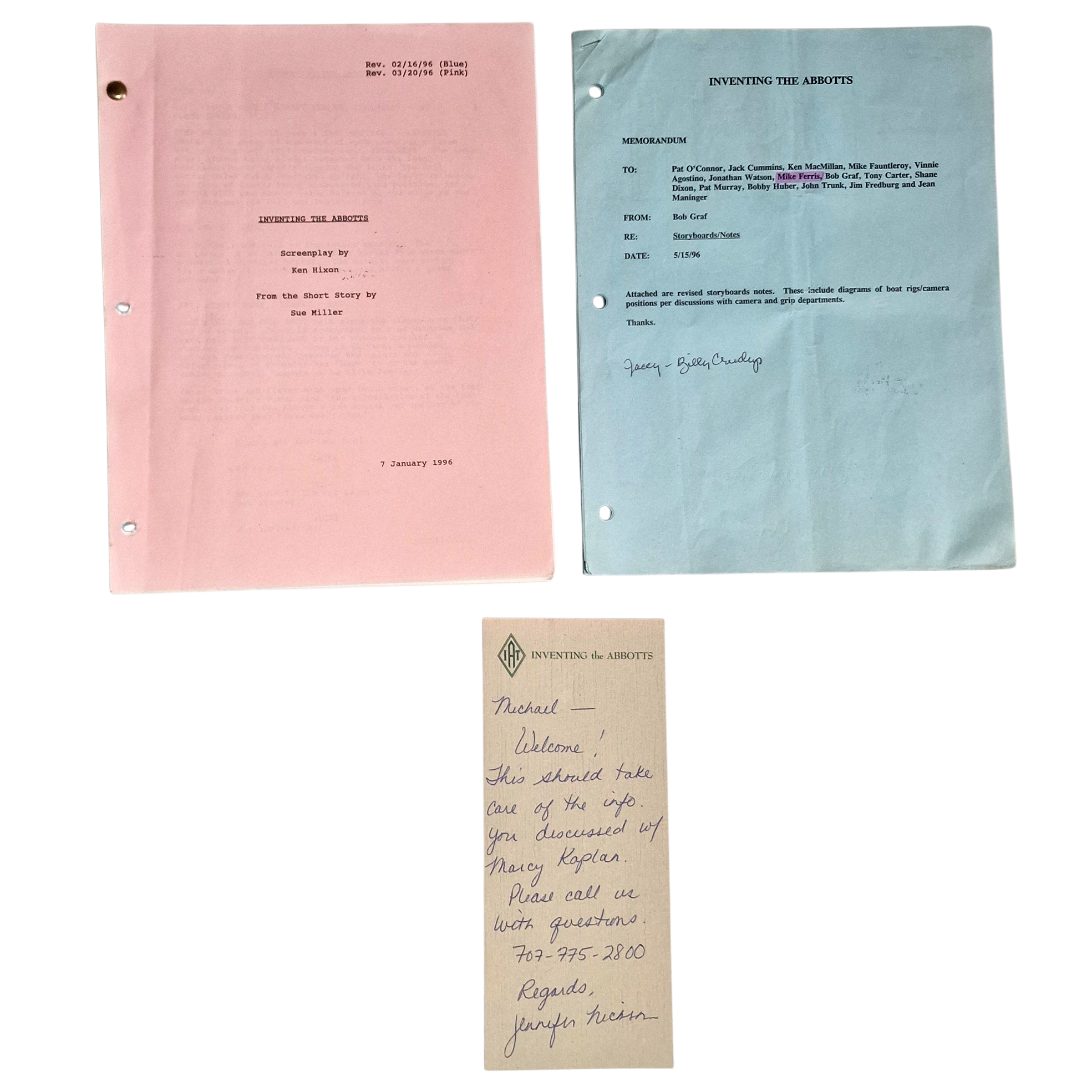 Original Production Script “Inventing the Abbotts” (1996) with Storyboards – Rare Movie Collectible