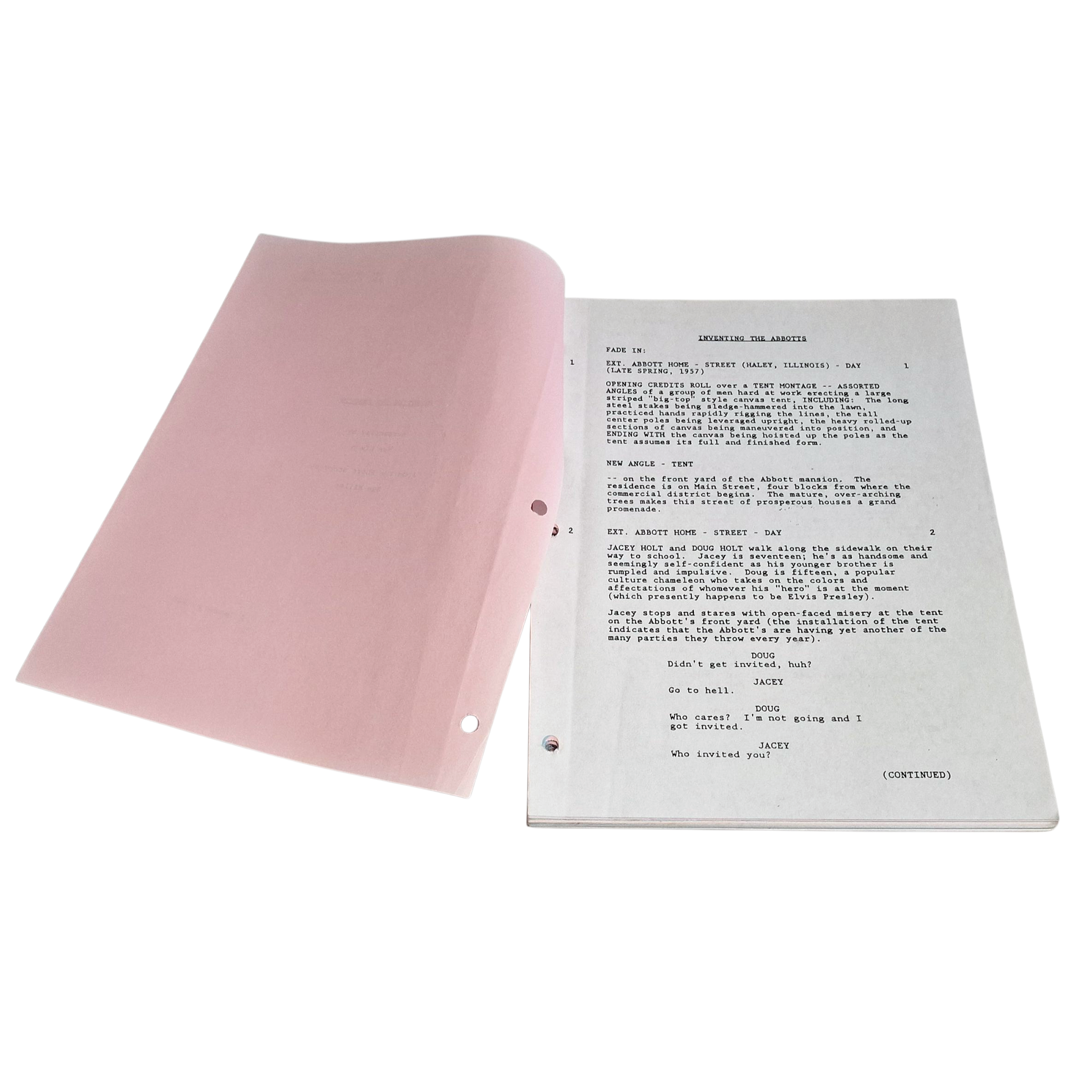 Rare original production-used script from the movie “Inventing the Abbotts” (1997), directed by Pat O’Connor and starring Joaquin Phoenix, Liv Tyler and Billy Crudup.