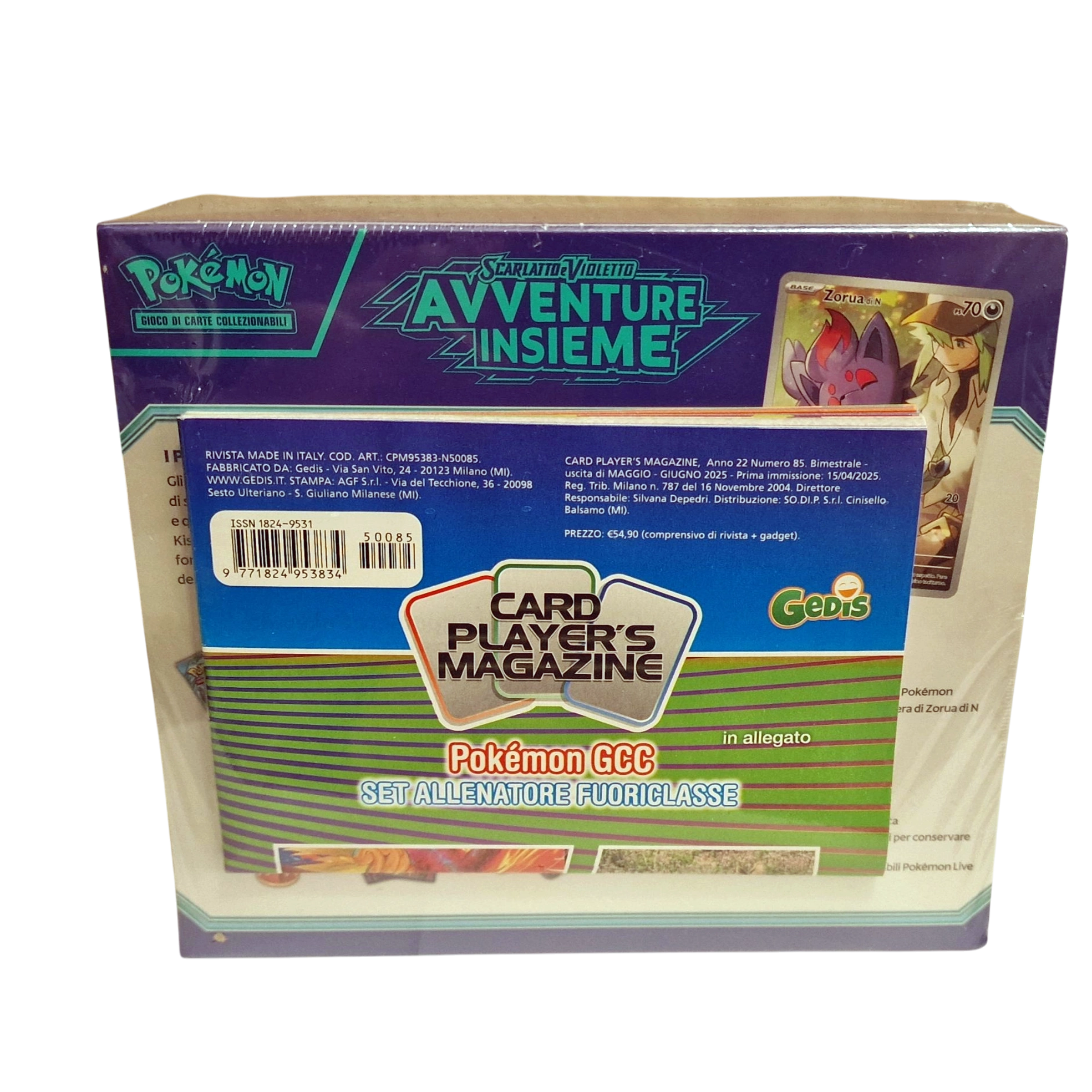 Il Set Allenatore Fuoriclasse dell’espansione Scarlatto e Violetto Avventure Insieme del GCC Pokemon contiene: