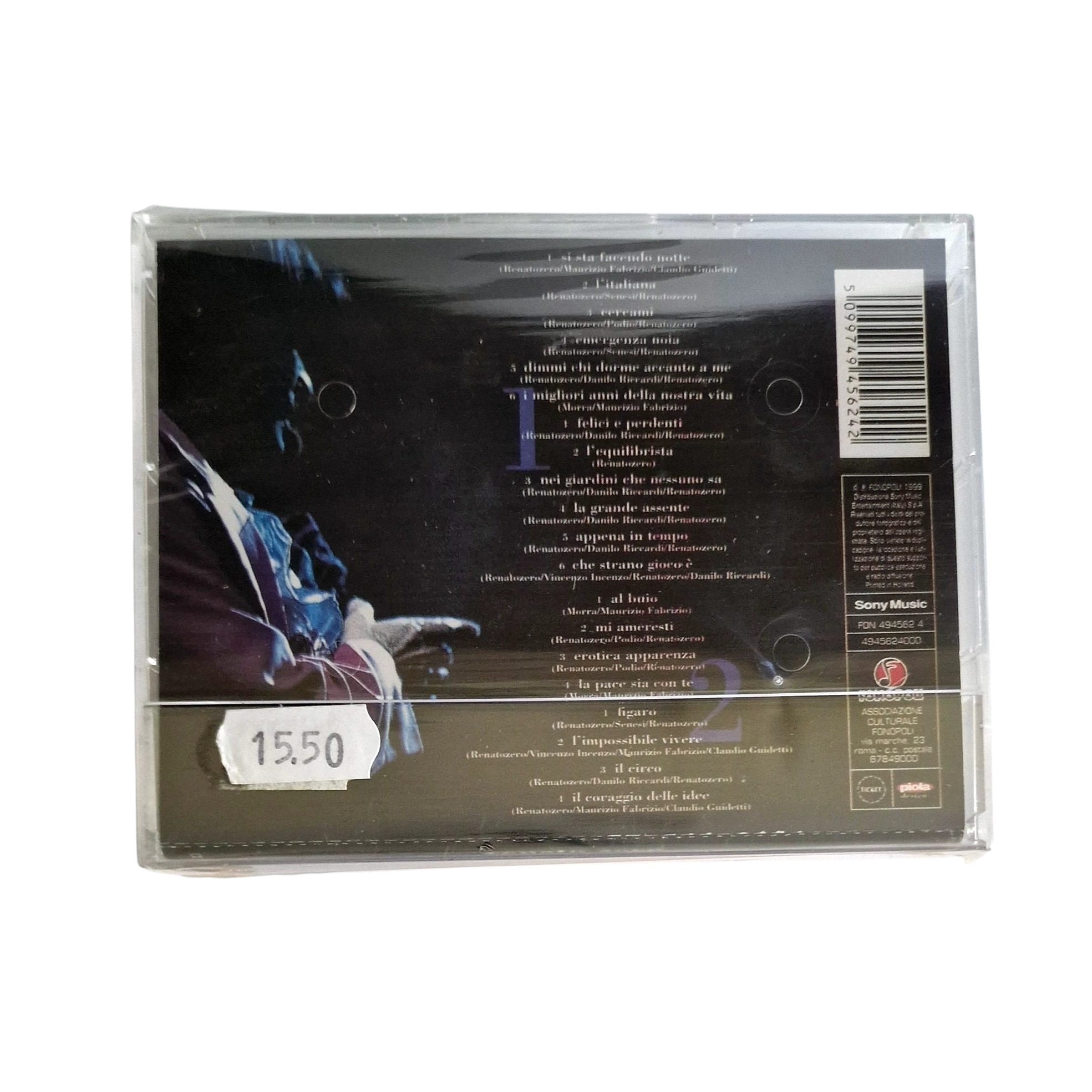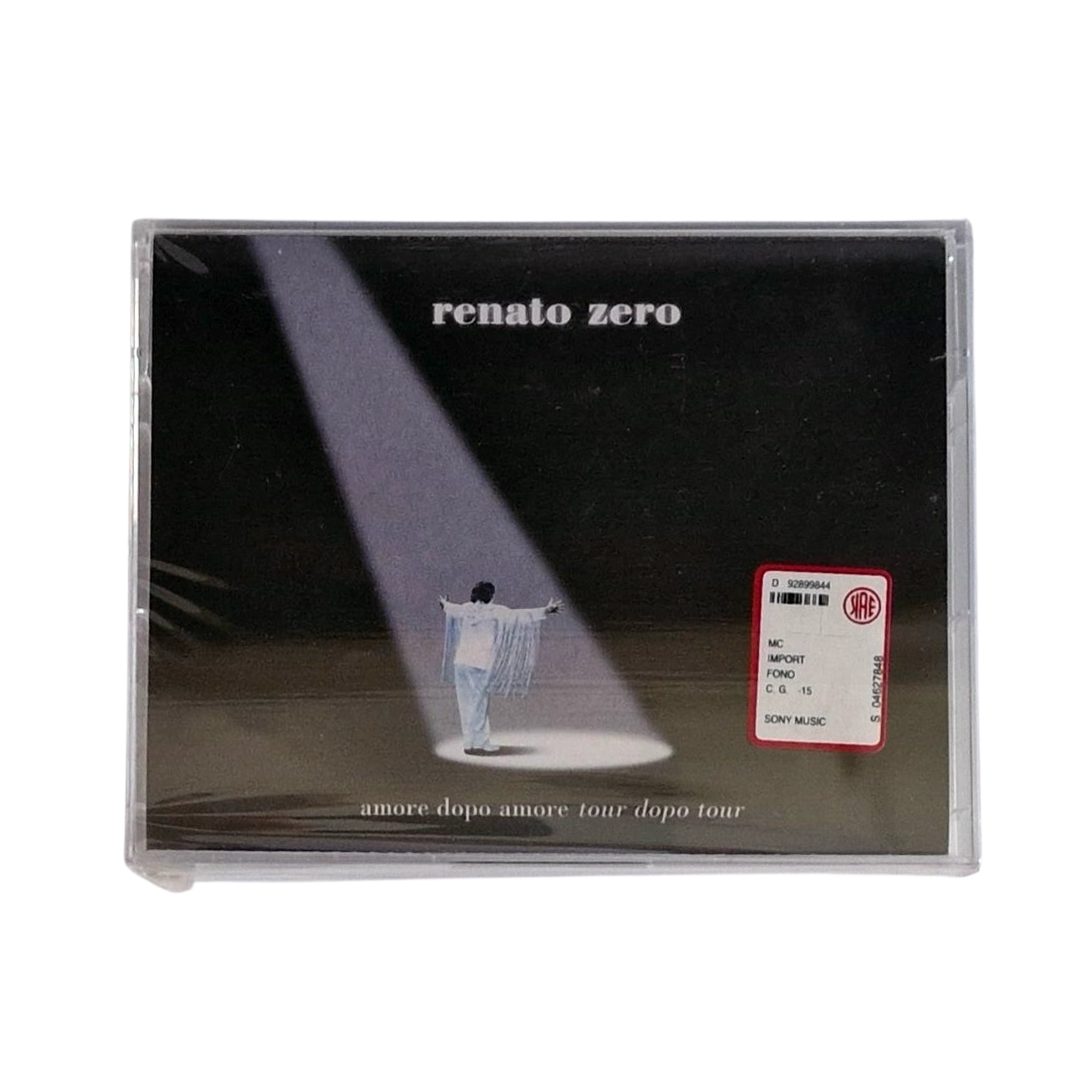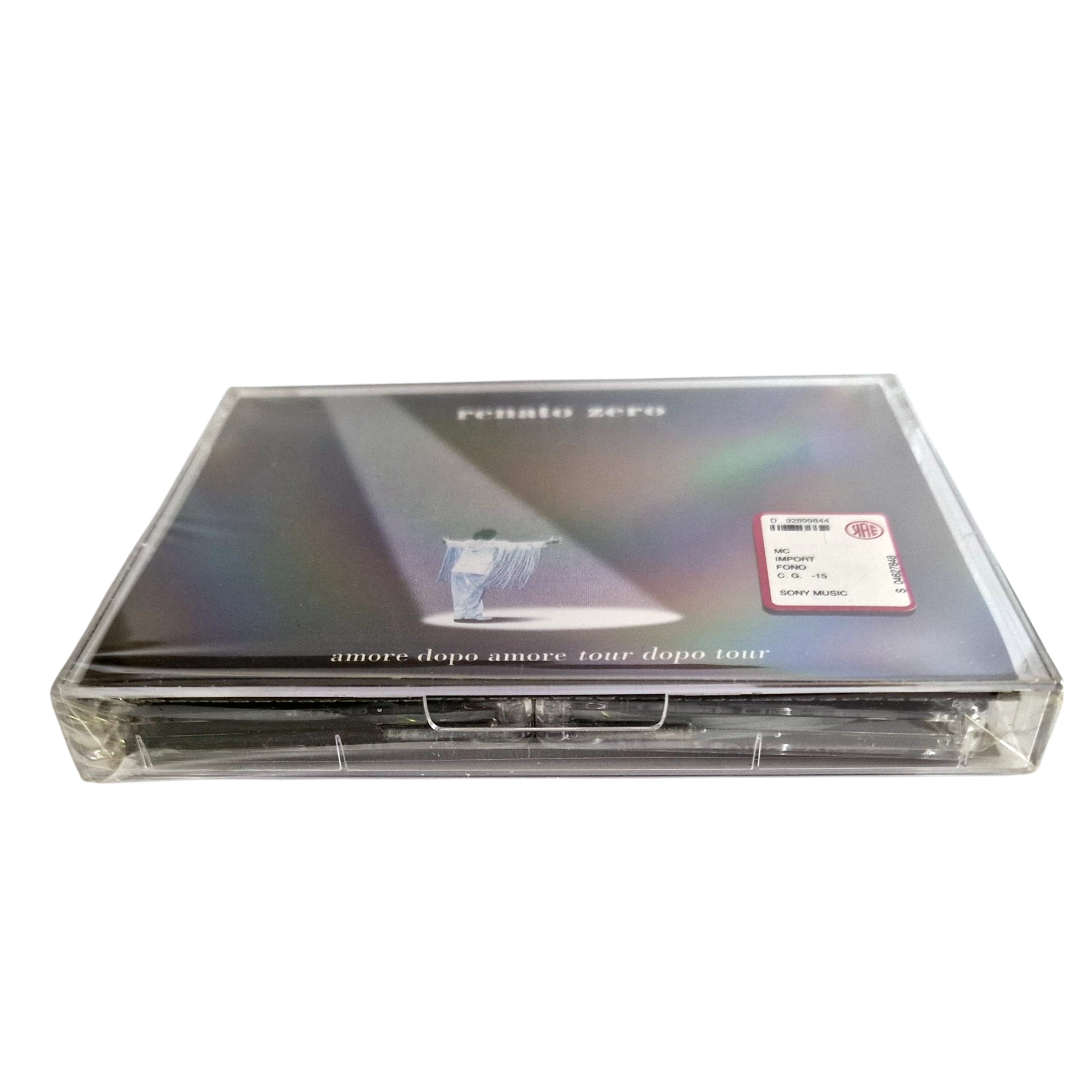 Rare original double cassette edition of Amore Dopo Amore – Tour Dopo Tour, the spectacular live album by Renato Zero, released in 1999 by Sony Music and Fonopoli.