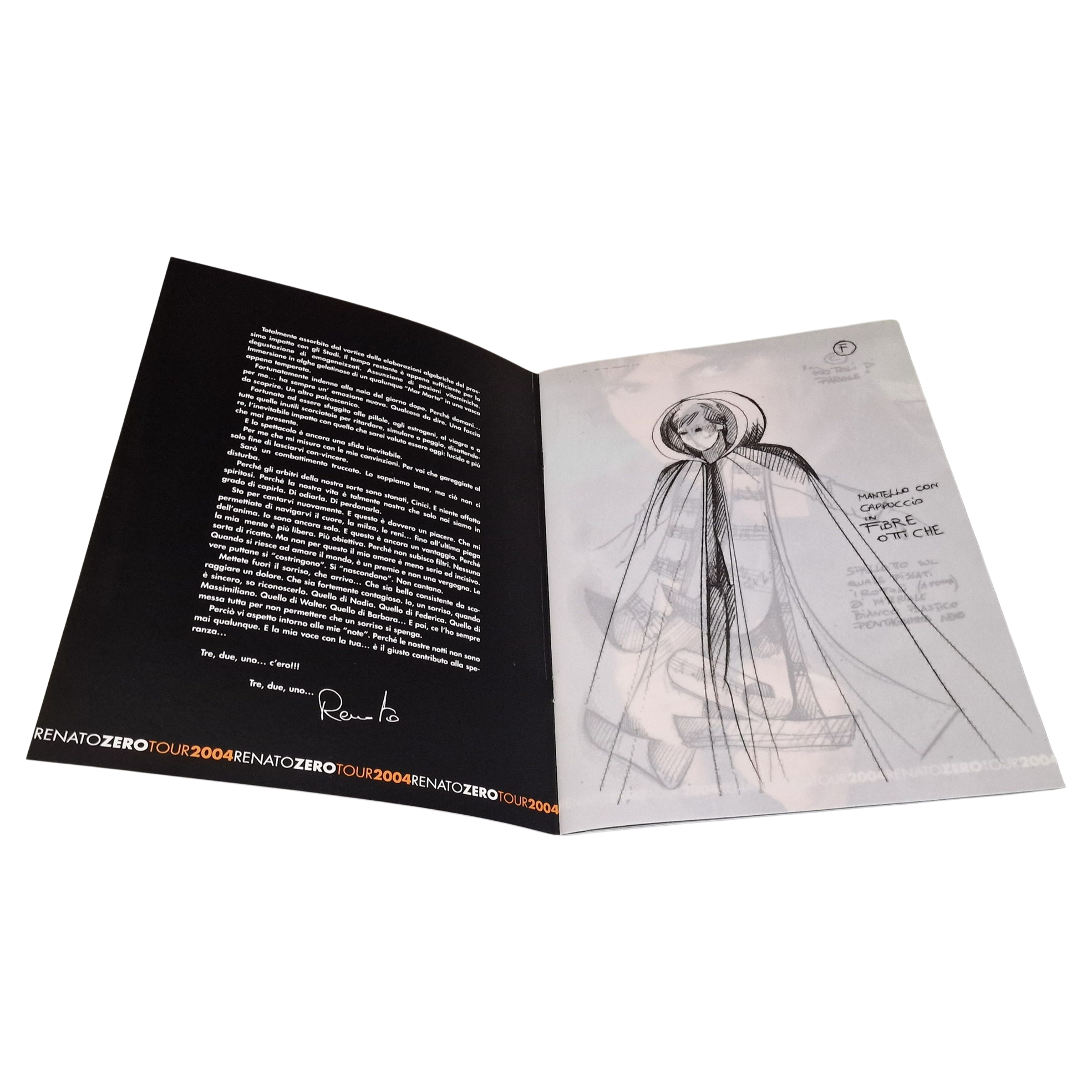 Rare official tour book from Renato Zero’s 2004 tour “Cattura il sogno”, released by his official fan club Zenzero to accompany one of his most visionary and artistic seasons.