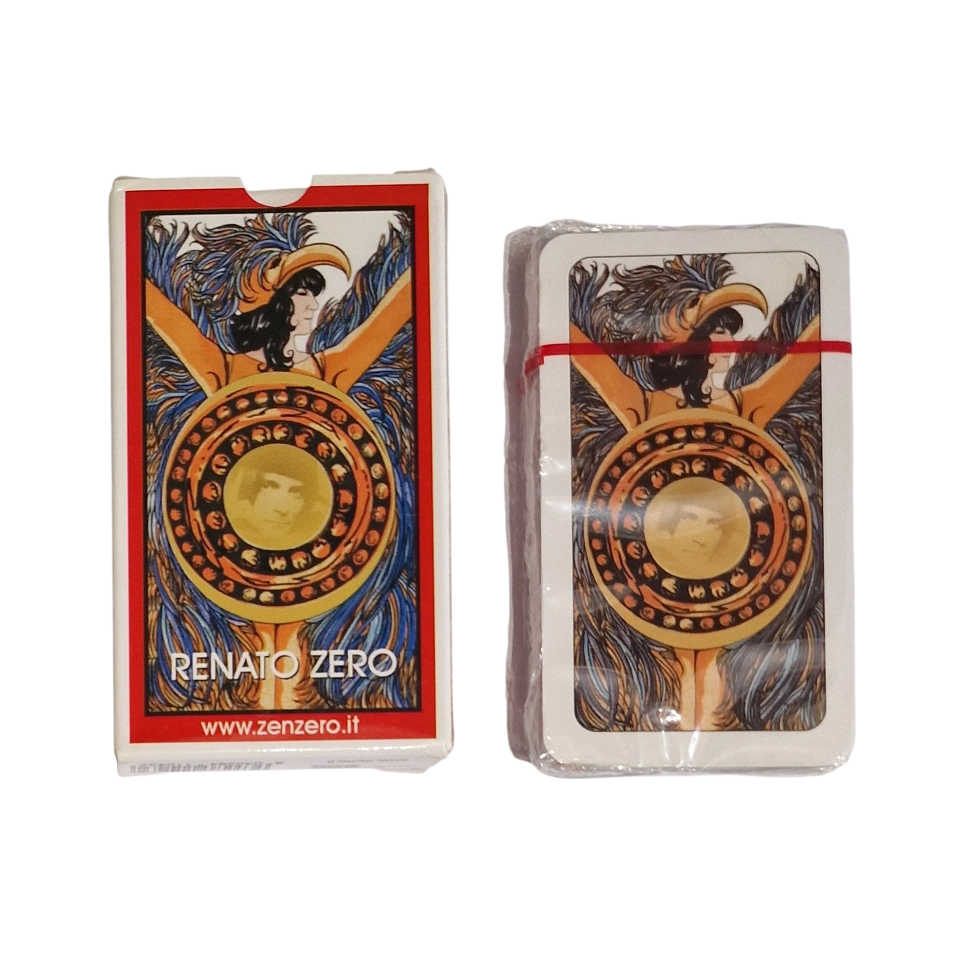 A rare deck of Piacenza-style playing cards entirely dedicated to iconic Italian artist Renato Zero, produced in 2002 by the Associazione Culturale Zenzero.
