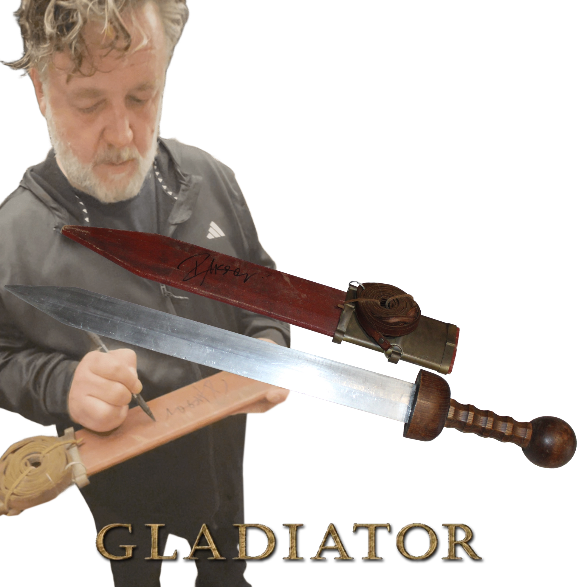 On June 27, 2024, in Rome, the legendary actor Russell Crowe personally signed the sheath during a public encounter — making this prop even more extraordinary.