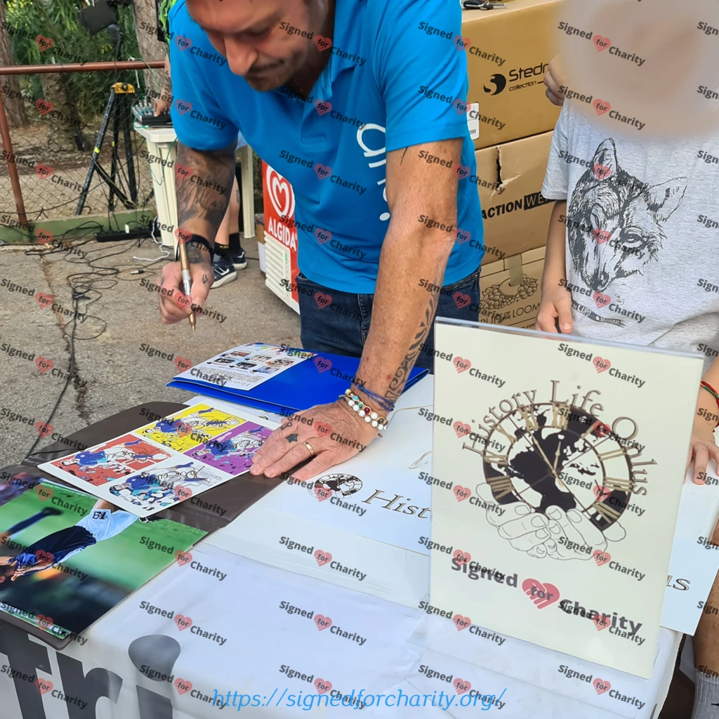 Printed Artwork by artist Gabriele Salvatore. The artwork is made unique by the subject’s original signatures: Salvatore Schillaci.