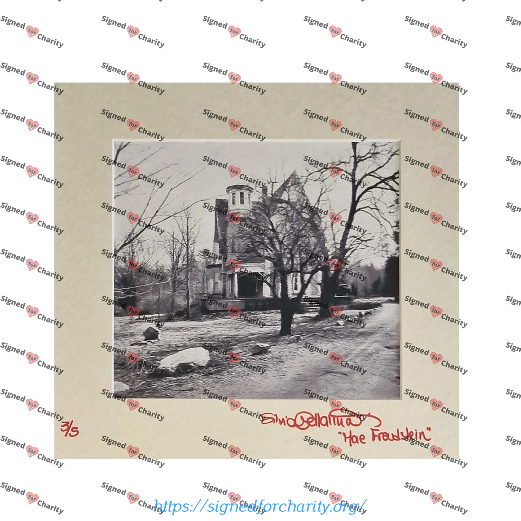 A must-have for true fans of Italian horror cinema: a faithful photographic reproduction of the iconic house as seen in Lucio Fulci’s cult classic “The House by the Cemetery”. This exclusive edition is limited to only 5 hand-numbered copies, each personally signed on the mat by Silvia Collatina, the unforgettable child actress who portrayed Mae in the film. She has also included her character’s name alongside her signature, making each piece truly unique and collectible. The photo captures the eerie and atmospheric essence of the film with exceptional fidelity. It is mounted on a high-quality mat, ready for framing and display. A rare tribute to Italian horror, perfect for collectors, cinephiles, and lovers of vintage thrills.