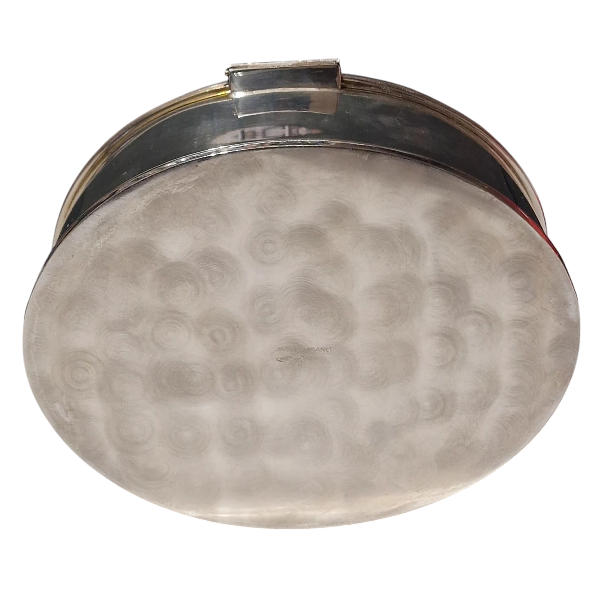 Finitura esterna: argento lucido a specchio, fondo con elegante lavorazione circolare