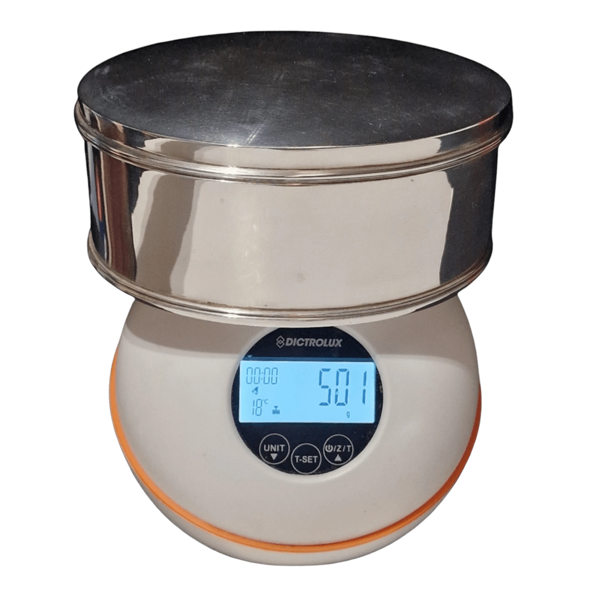 Peso: circa 500 g (come visibile in foto sulla bilancia)