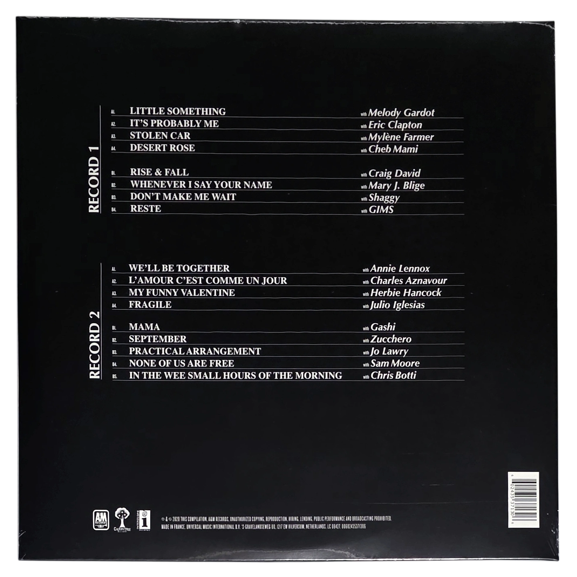 • Full tracklist on the back, including collaborations with Eric Clapton, Annie Lennox, Herbie Hancock, Mylène Farmer, Zucchero, and more