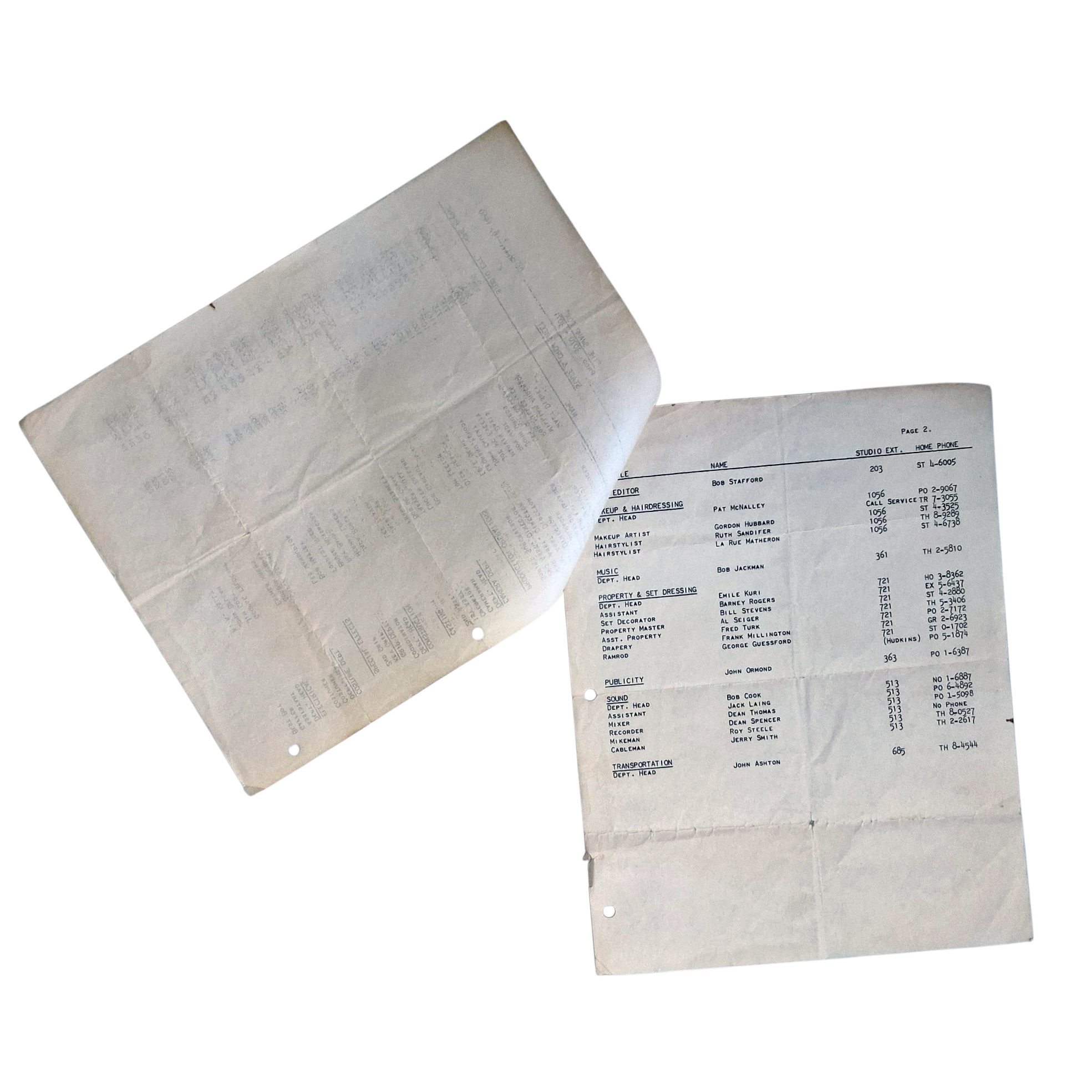 Includes original studio extensions and private phone numbers from the time